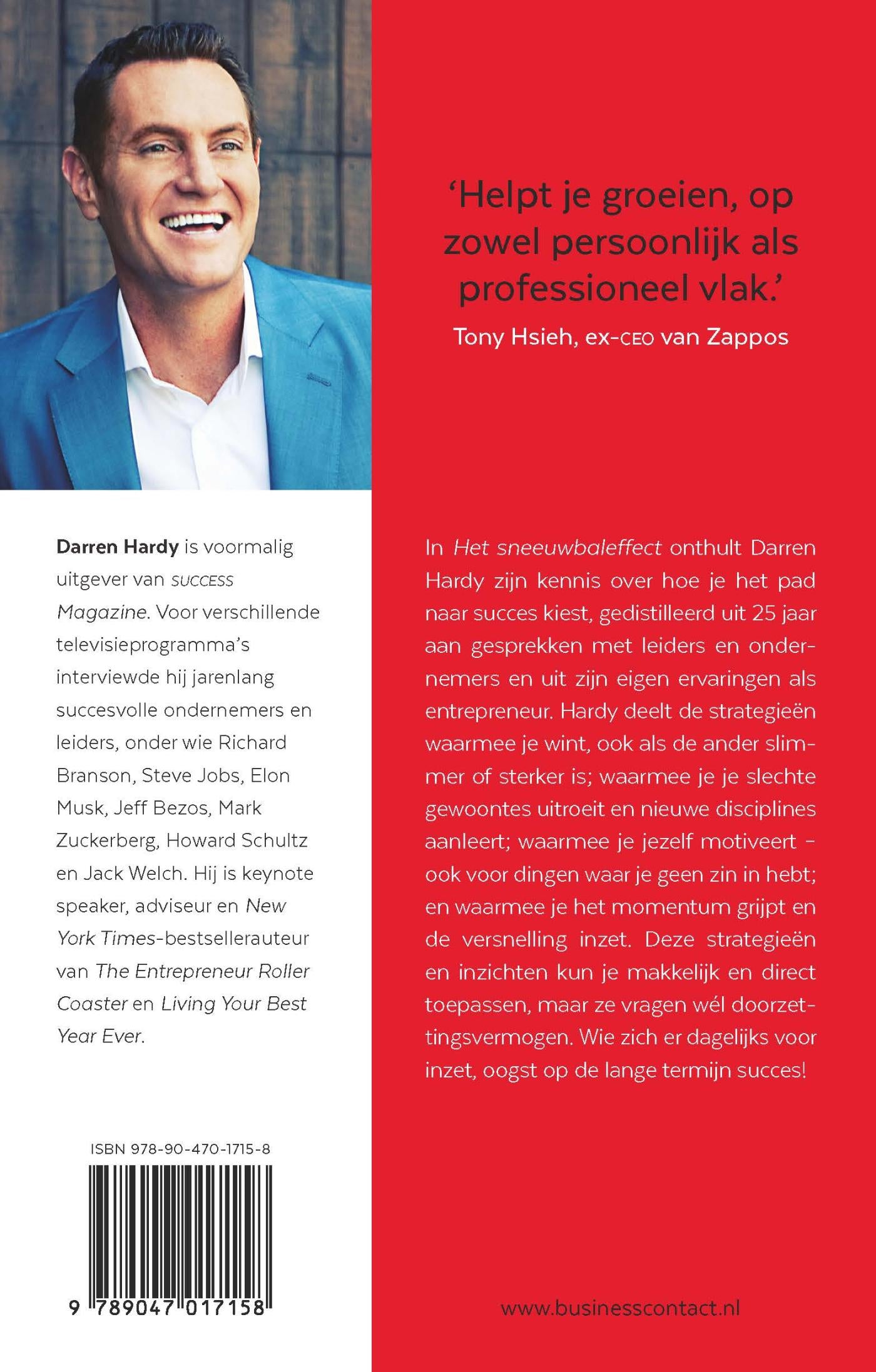In Het sneeuwbaleffect onthult hij de strategieën waarmee je wint, ook als de ander slimmer of sterker is; waarmee je je slechte gewoontes uitroeit en nieuwe disciplines aanleert; waarmee je jezelf motiveert – ook voor dingen waar je geen zin in hebt; en waarmee je momentum grijpt en de versnelling inzet. Dit boek zit boordevol heldere inzichten en strategieën die je makkelijk en direct kunt toepassen, maar die wél doorzettingsvermogen vragen. Wie zich er dagelijks voor inzet, oogst op de lange termijn succes!