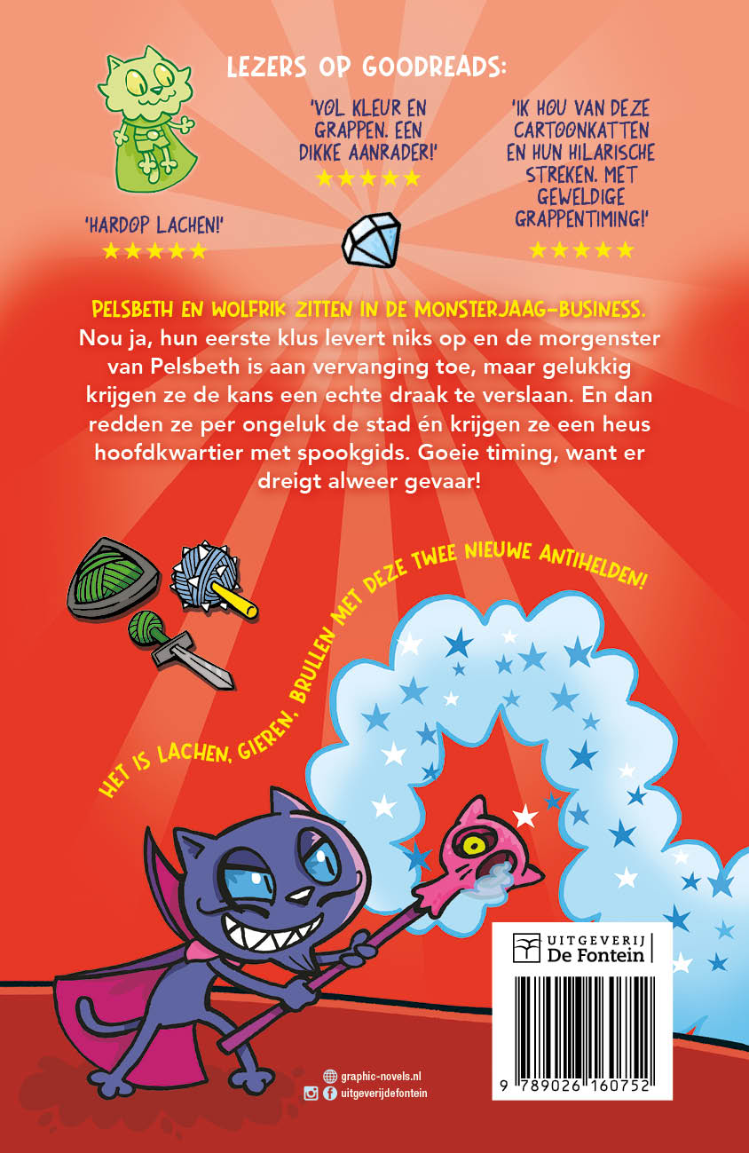 Pelsbeth en Wolfrik zitten in de monsterjaag-business. Nou ja, hun eerste klus levert niks op en de morgenster van Pelsbeth is aan vervanging toe, maar gelukkig krijgen ze de kans een echte draak te verslaan. En dan redden ze per ongeluk de stad én krijgen ze een heus hoofdkwartier met spookgids. Goeie timing, want er dreigt alweer gevaar!