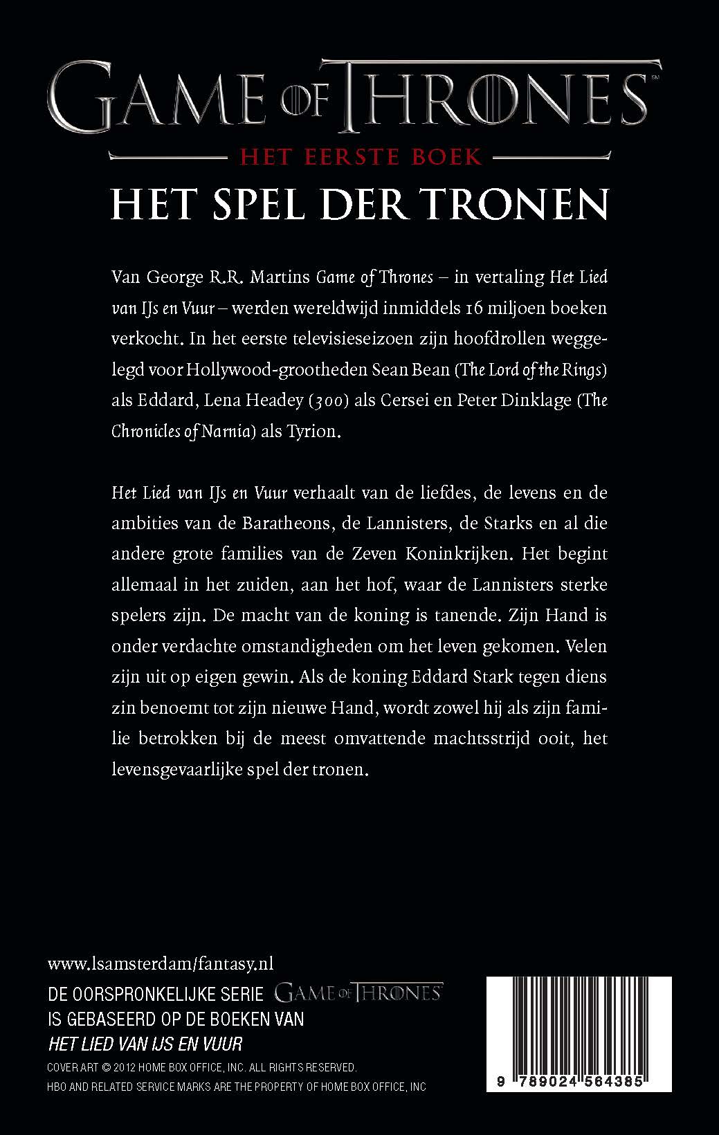 Game of Thrones Het spel der Tronen, het eerste televisieseizoen, verhaalt van de liefdes, de levens en de ambities van de Baratheons, de Lannisters, de Starks en al die andere grote families van de Zeven Koninkrijken. Het begint allemaal in het zuiden, aan het hof, waar de Lannisters sterke spelers zijn. De macht van de koning is tanende. Zijn Hand is onder verdachte omstandigheden om het leven gekomen. Velen zijn uit op eigen gewin. Als de koning Eddard Stark tegen diens zin benoemt tot zijn nieuwe Hand, wordt zowel hij als zijn familie betrokken bij de meest omvattende machtsstrijd ooit, het levensgevaarlijke spel der tronen.