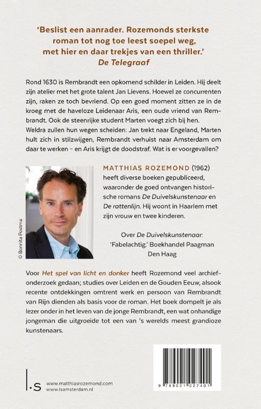 (POD )In de roman Het spel van licht en donker vertelt Matthias Rozemond het verhaal over de jonge jaren van de schilder Rembrandt van Rijn en zijn vrienden. Het spel van licht en donker is goed geresearcht en zo levendig geschreven dat je als lezer wordt ondergedompeld in het leven van de jonge Rembrandt.