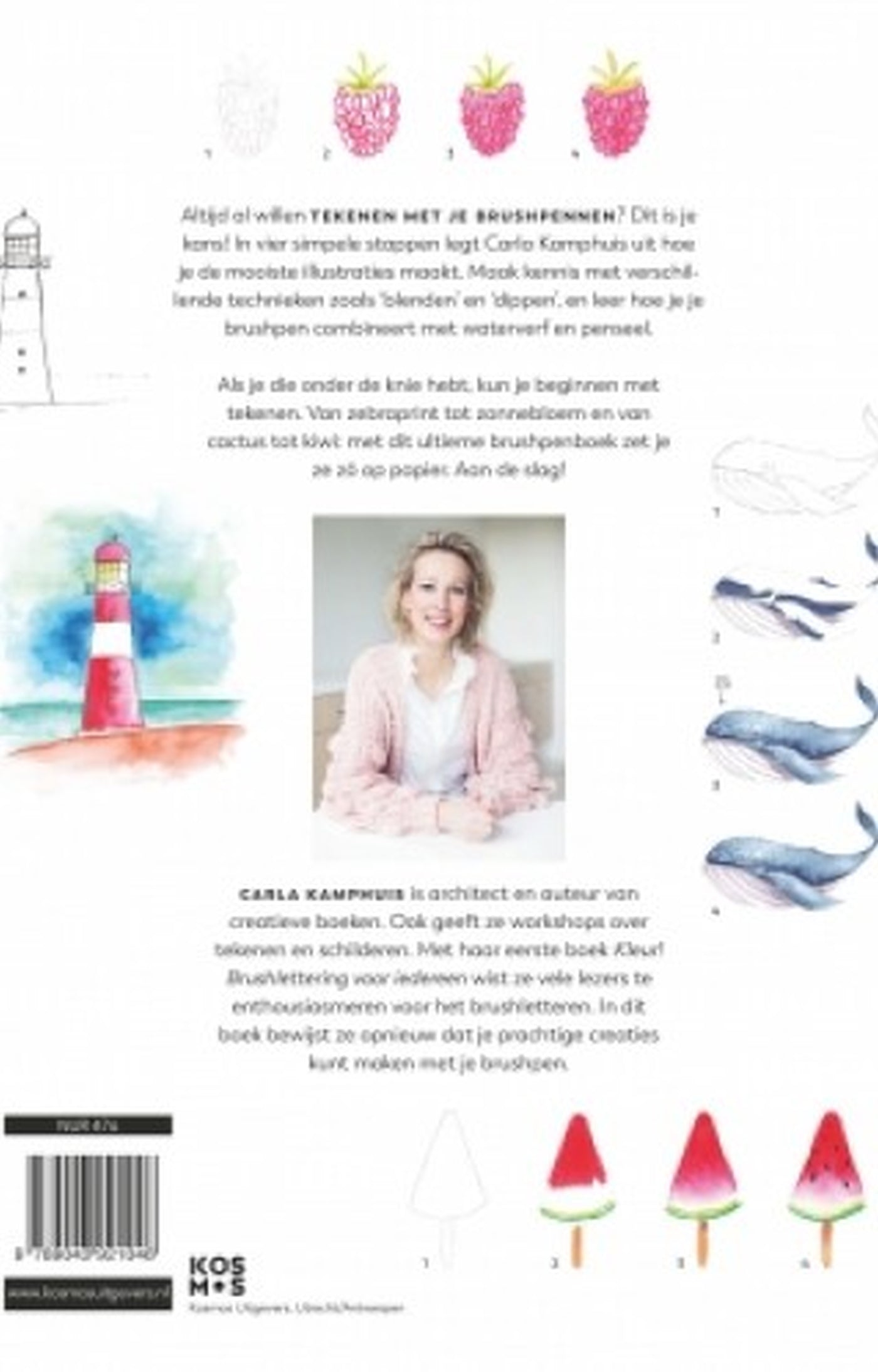 In Het ultieme brushpenboek neemt Carla Kamphuis je bij de hand en leert je in vier eenvoudige stappen de meest uiteenlopende tekeningen maken met de brushpen. Deze is niet alleen geweldig om mee te kalligraferen, je kunt er ook schitterende illustraties mee maken. Van dieren tot fruit, regenbogen en eenhoorns, emoticons en kawaii tot patronen, planten en bloemen – alles komt voorbij. Natuurlijk is er ook aandacht voor verschillende handschriften, bullet journal headers en nog veel meer.