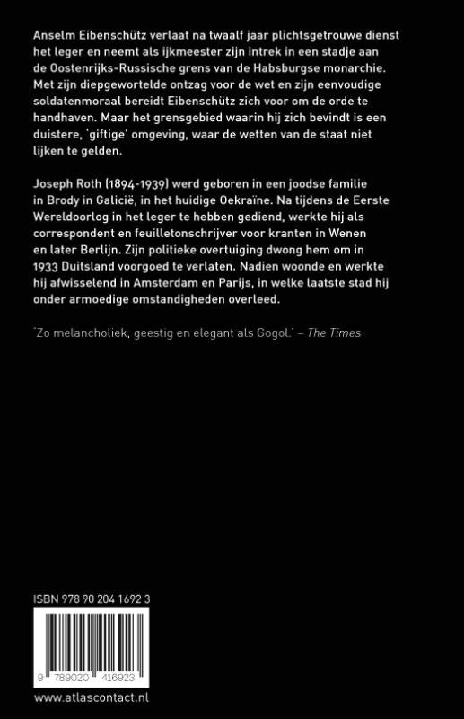 In ‘Het valse gewicht’ van Joseph Roth verlaat Anselm Eibenschütz na twaalf jaar plichtsgetrouwe dienst het leger en neemt als ijkmeester zijn intrek in een stadje aan de Oostenrijks-Russische grens van de Habsburgse monarchie. Met zijn diepgewortelde ontzag voor de wet en zijn eenvoudige soldatenmoraal bereidt Eibenschütz zich voor om de orde te handhaven. Maar het grensgebied waarin hij zich bevindt is een duistere, ‘giftige’ omgeving, waar de wetten van de staat niet lijken te gelden.