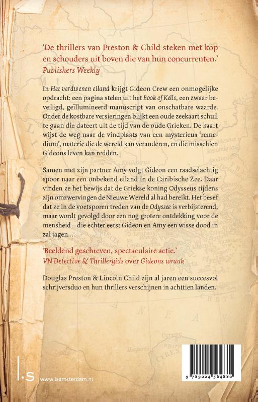 In Het verdwenen eiland krijgt Gideon Crew een onmogelijke opdracht: een pagina stelen uit het Book of Kells, een zwaar beveiligd, geïllumineerd manuscript van onschatbare waarde. Onder de kostbare versieringen blijkt een oude zeekaart schuil te gaan die dateert uit de tijd van de oude Grieken. De kaart wijst de weg naar de vindplaats van een mysterieus ‘remedium’, materie die de wereld kan veranderen, en die misschien Gideons leven kan redden.