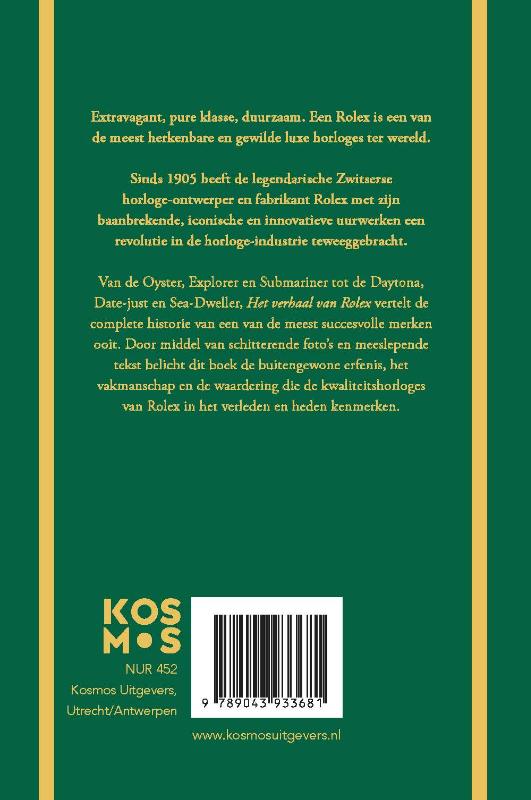 Voortreffelijk, tijdloos en duurzaam: het Zwitserse Rolex is een van de meest herkenbare en gewilde luxe horlogemerken ter wereld. Het oorspronkelijk in Groot-Brittannië opgerichte merk Rolex bracht een revolutie teweeg in de horloge-industrie met baanbrekende en innovatieve ontwerpen die wereldwijd nog altijd domineren. In dit boek boordevol verbluffende afbeeldingen en fascinerende teksten lees je het complete verhaal van het merk. Het perfecte cadeau voor de liefhebber van mooie klokken!