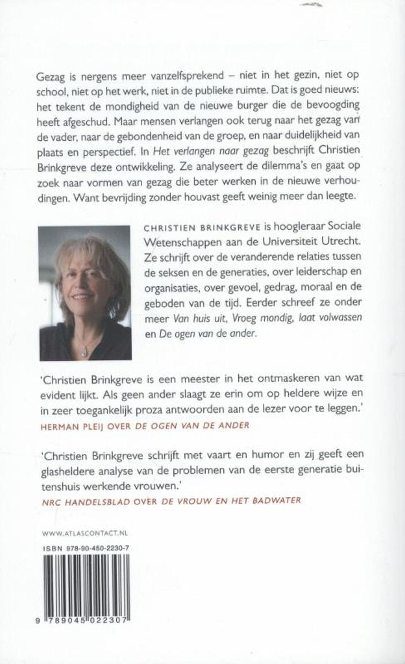 Gezag is nergens meer vanzelfsprekend, niet in het gezin, niet op school, niet op het werk, niet in de publieke ruimte. En dat is goed nieuws: het tekent de mondigheid van de nieuwe burger die de bevoogding heeft afgeschud. Maar de moderne mens heeft heimwee naar het gezag van de vader, de gebondenheid van de groep, en duidelijkheid van plaats en perspectief. In een tijd dat niemand gezag nog kritiekloos erkent, valt alle houvast en structuur weg. In Waarom grijpt niemand in? beschrijft Christien Brinkgreve deze ontwikkeling, en ze gaat op zoek naar vormen van gezag die voldoen aan een steeds breder gedeelde behoefte.