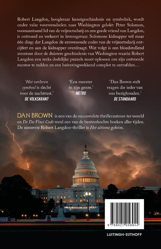 Het Verloren Symbool is het derde deel in de Robert Langdon-serie, geschreven door Dan Brown. Een bloedstollend avontuur over de duistere geschiedenis van Washington en de vrijmetselarij…