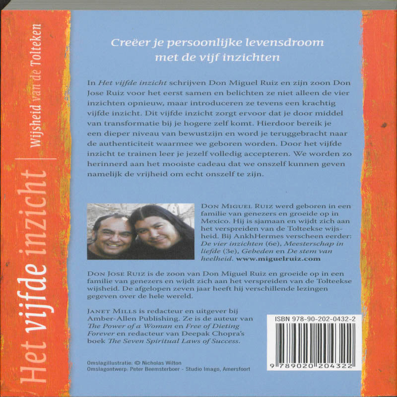 In Het vijfde inzicht schrijven Don Miguel Ruiz en zijn zoon Don Jose Ruiz voor het eerst samen en belichten ze niet alleen de vier inzichten opnieuw, maar introduceren ze tevens een krachtig vijfde inzicht. Het vijfde inzicht is een ultiem inzicht dat je ertoe zal brengen je hele werkelijkheid te zien met de ogen van waarheid, waarheid zonder woorden. Het resultaat van de beoefening van het vijfde inzicht is de complete aanvaarding van jezelf gewoon zoals je bent en ook anderen te accepteren gewoon zoals ze zijn. Als je daarin slaagt, zal eeuwig geluk je beloning zijn.
