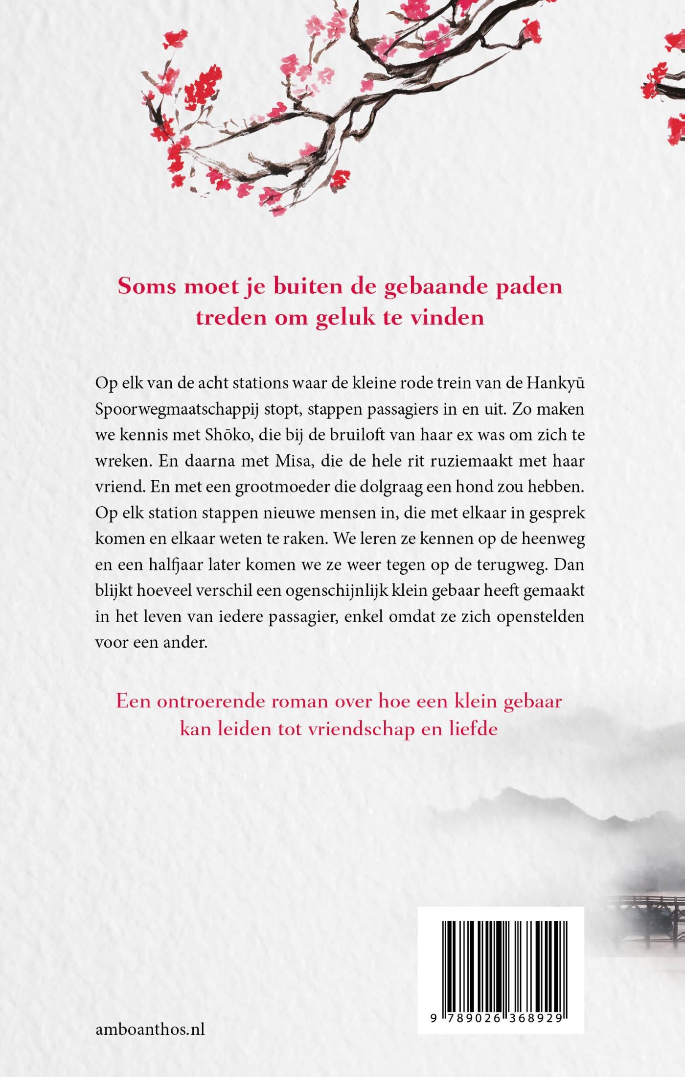 Op elk van de acht stations waar de kleine rode trein van de Hankyu Railway stopt, stappen passagiers in en uit. Zo maken we kennis met Shõko, die bij de bruiloft van haar ex was om zich te wreken. En daarna Misa, die de hele rit ruziemaakt met haar vriend. En met een grootmoeder die dolgraag een hond zou hebben. Op elk station stappen nieuwe mensen in, die met elkaar in gesprek komen en elkaar weten te raken. We leren ze kennen op de heenweg en een halfjaar later komen we ze weer tegen op de terugweg. Dan blijkt hoeveel verschil een ogenschijnlijk klein gebaar heeft gemaakt in het leven van iedere passagier, enkel omdat ze zich openstelden voor een ander.