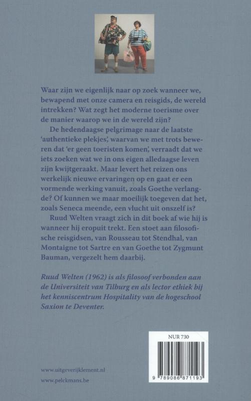 Ruud Welten vraagt zich in dit boek af wie hij is wanneer hij eropuit trekt. Een stoet aan filosofische reisgidsen, van Rousseau tot Stendhal, van Montaigne tot Sartre en van Goethe tot Zygmunt Bauman, vergezelt hem daarbij.