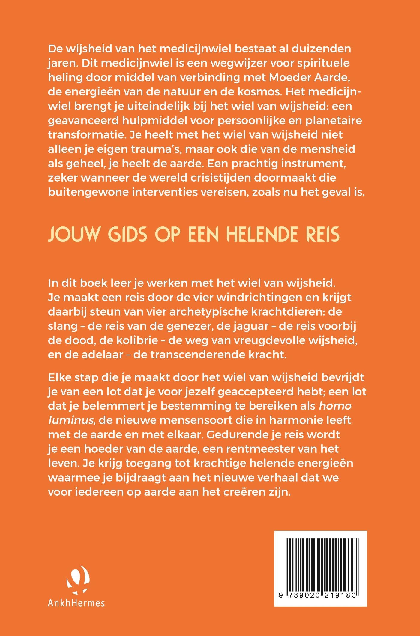In dit boek leer je werken met het wiel van wijsheid. Je maakt een reis door de vier windrichtingen en krijgt daarbij steun van vier archetypische krachtdieren: de slang – de reis van de genezer, de jaguar – de reis voorbij de dood, de kolibrie – de weg van vreugdevolle wijsheid, en de adelaar – de transcenderende kracht.