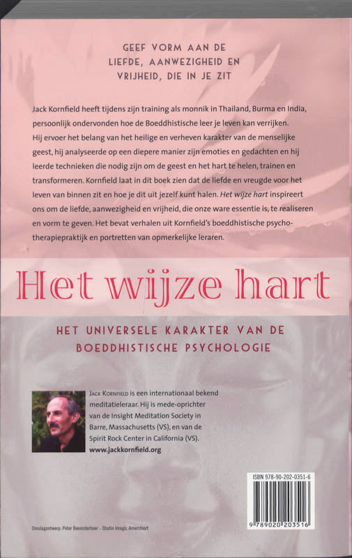 Jack Kornfield heeft tijdens zijn training als monnik in Thailand, Burma en India, persoonlijk ondervonden hoe de boeddhistische leer je leven kan verrijken. Hij ervoer het belang van het heilige en verheven karakter van de menselijke geest, hij analyseerde op een diepere manier zijn emoties en gedachten en hij leerde technieken die nodig zijn om de geest en het hart te helen, trainen en transformeren. Kornfield laat in dit boek zien dat de liefde en vreugde voor het leven van binnen zit en hoe je dit uit jezelf kunt halen. Het wijze hart inspireert ons om de liefde, aanwezigheid en vrijheid, die onze ware essentie is, te realiseren en vorm te geven. Het bevat verhalen uit Kornfield’s boeddhistische psychotherapiepraktijk en portretten van opmerkelijke leraren.