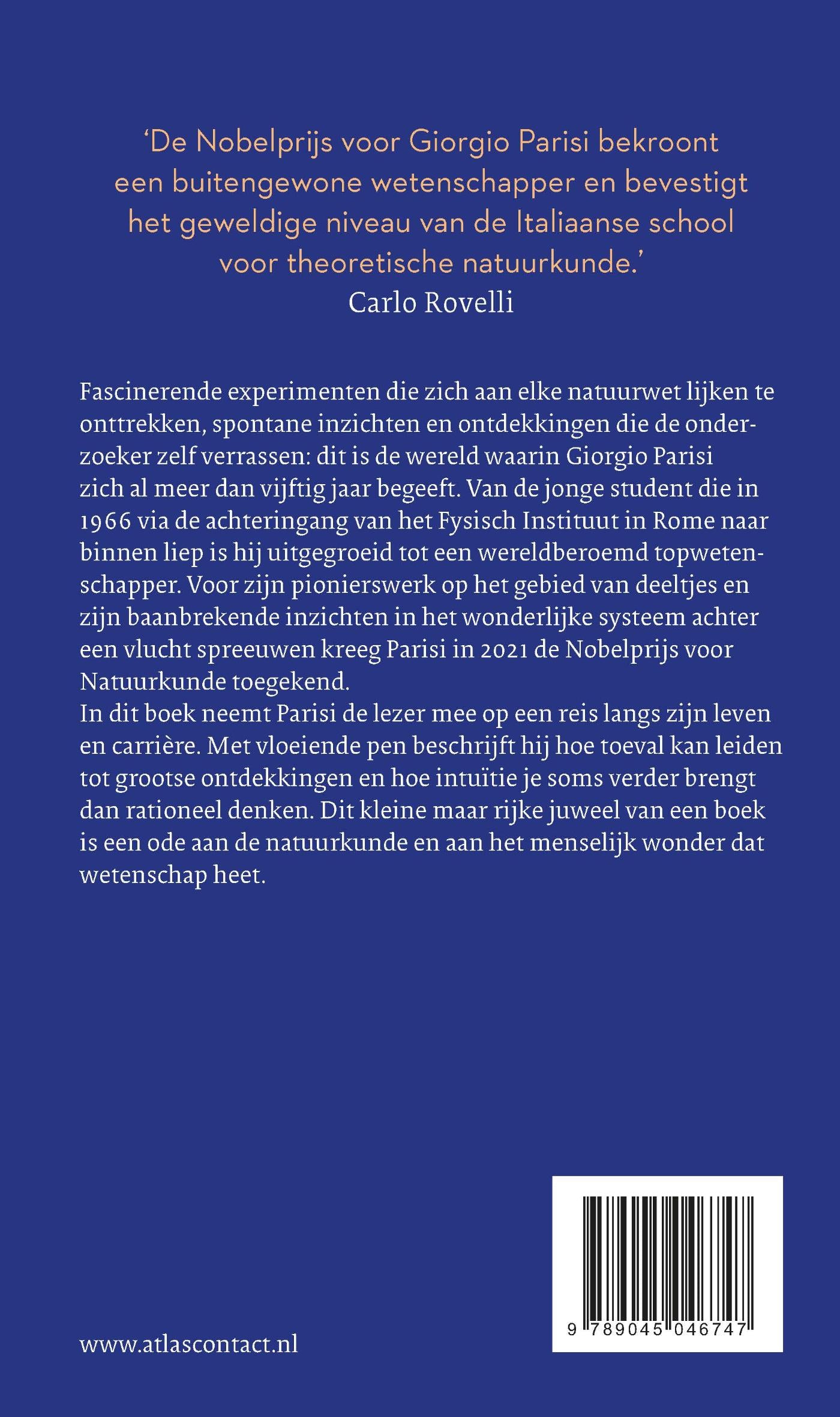 In ‘Het wonder van complexe systemen’ neemt Giorgio Parisi ons mee in de wereld waarin hij zich als meer dan vijftig jaar begeeft: fascinerende experimenten die zich aan elke natuurwet lijken te onttrekken, spontane inzichten en ontdekkingen die de onderzoeker zelf verrassen. Van de jonge student die in 1966 via de achteringang van het Fysisch Instituut in Rome naar binnen liep is hij uitgegroeid tot een wereldberoemd topwetenschapper. Voor zijn pionierswerk op het gebied van deeltjes en zijn baanbrekende inzichten in het wonderlijke systeem achter een vlucht spreeuwen kreeg Parisi in 2021 de Nobelprijs voor Natuurkunde toegekend.