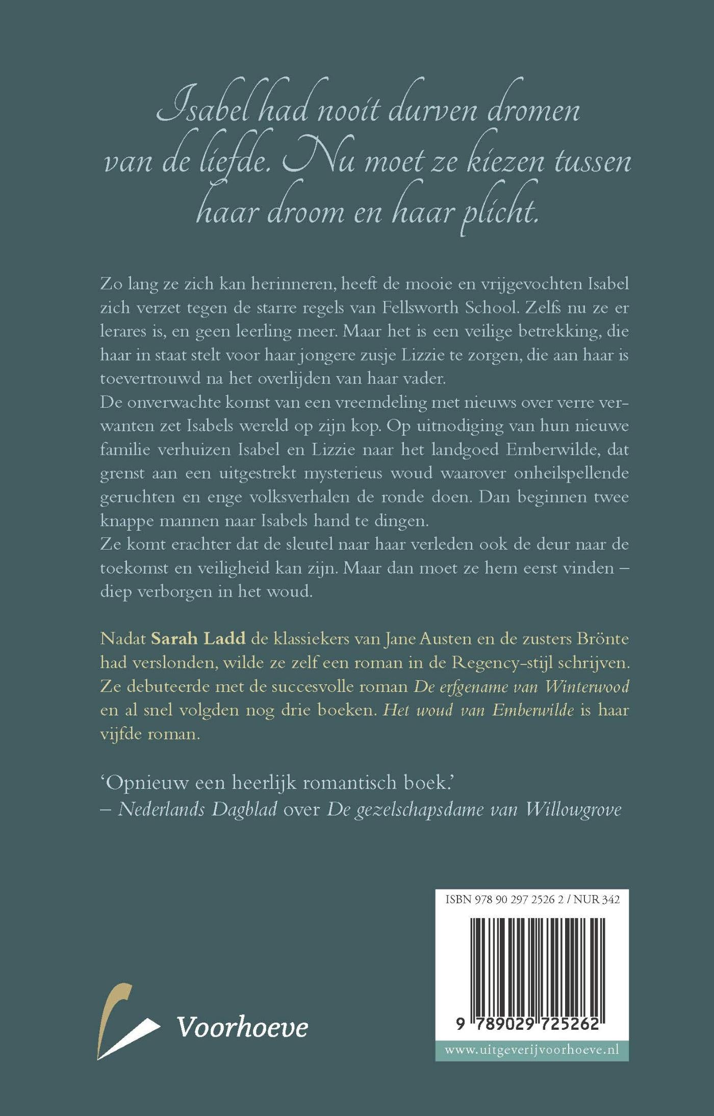 ‘Het woud van Emberwilde’ is een prachtige historische roman van Sarah Ladd die je in een adem uitleest. Zolang ze zich kan herinneren verzet de knappe Isabel zich tegen de strenge regels van Fellsworth School. Ook nu ze geen leerling meer is, maar lerares, doet ze haar best een fijne plek te creëren voor de leerlingen, onder wie haar zusje Lizzie, voor wie ze zorgt sinds haar vaders dood. De komst van een vreemdeling met nieuws over onbekende familieleden zet Isabels wereld op zijn kop. Op uitnodiging van hun nieuwe familie, reizen Isabel en Lizzie naar Emberwilde, een uitgestrekt landgoed met een mysterieus bos, omgeven door folklore en onheilspellende geruchten. Al snel komt ze in een delicate dans met twee knappe mannen terecht, die allebei naar haar hand dingen. Te midden van het geflirt, gaat ze op zoek naar de waarheid over haar verleden – diep verborgen in Emberwilde Forest – die haar toekomst zal bepalen.