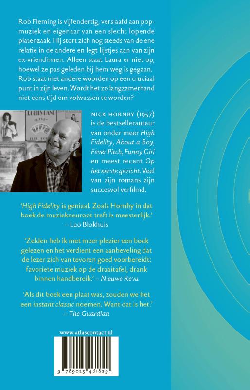 ‘High Fidelity’, de succesvolle roman van Nick Hornby nu opnieuw uitgebracht. De hoofdpersoon is Rob Fleming, vijfendertig, verslaafd aan popmuziek en eigenaar van een slecht lopende platenzaak. Hij stort zich nog steeds van de ene relatie in de andere en legt lijstjes aan van zijn ex-vriendinnen. Alleen staat Laura er niet op, hoewel ze pas geleden bij hem weg is gegaan.