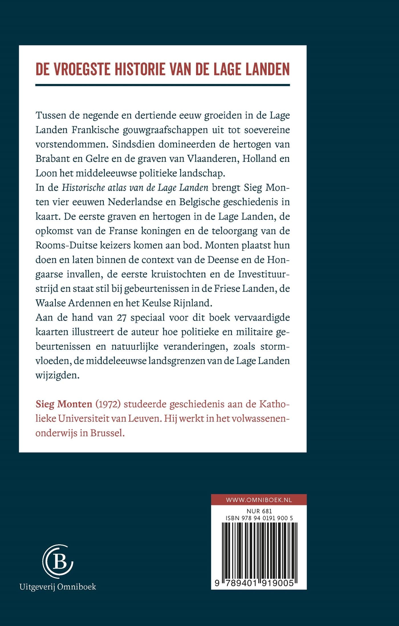 Aan de hand van deze historische atlas wordt de geschiedenis van de Lage Landen tussen de negende en de dertiende eeuw verteld. Over deze periode waar geen landkaarten van bekend zijn, ontkiemden voorheen Frankische gouwgraafschappen tot soevereine vorstendommen onder de Franse koning en de koningen en keizers van het Heilig Roomse Rijk. De kaarten zijn nieuw, informatief en innovatief. Aangevuld met stambomen, illustraties en beschrijvingen worden vier eeuwen uit de geschiedenis van België en Nederland in kaart gebracht.