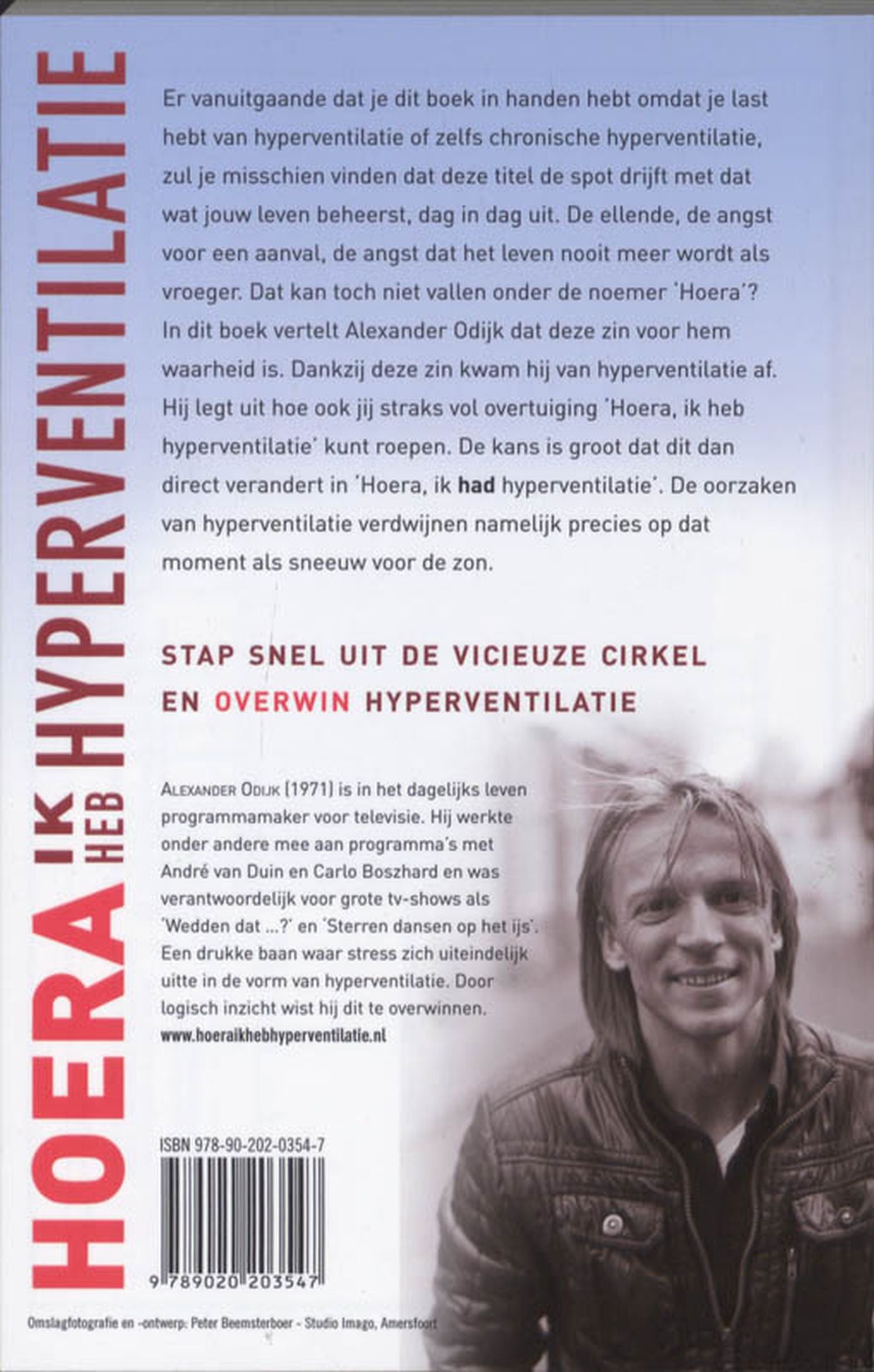 Als je last hebt van (chronische) hyperventilatie, dan vind je misschien dat deze titel de spot drijft met dat wat jouw leven dag in dag uit beheerst. De ellende van en de angst voor een aanval, dat het leven nooit meer wordt als vroeger, dat kan toch niet vallen onder de noemer ‘hoera’? Alexander Odijk vertelt in Hoera, ik heb hyperventilatie dat deze zin voor hem waarheid is. Dankzij deze zin kwam hij van zijn hyperventilatie af. Hij legt uit hoe ook jij straks vol overtuiging ‘Hoera, ik heb hyperventilatie’ kunt roepen. De kans is groot dat je zelfs zegt: ‘Hoera, ik had hyperventilatie!’ De oorzaken van hyperventilatie verdwijnen namelijk precies op dat moment als sneeuw voor de zon. Stap snel uit de vicieuze cirkel en overwin hyperventilatie.