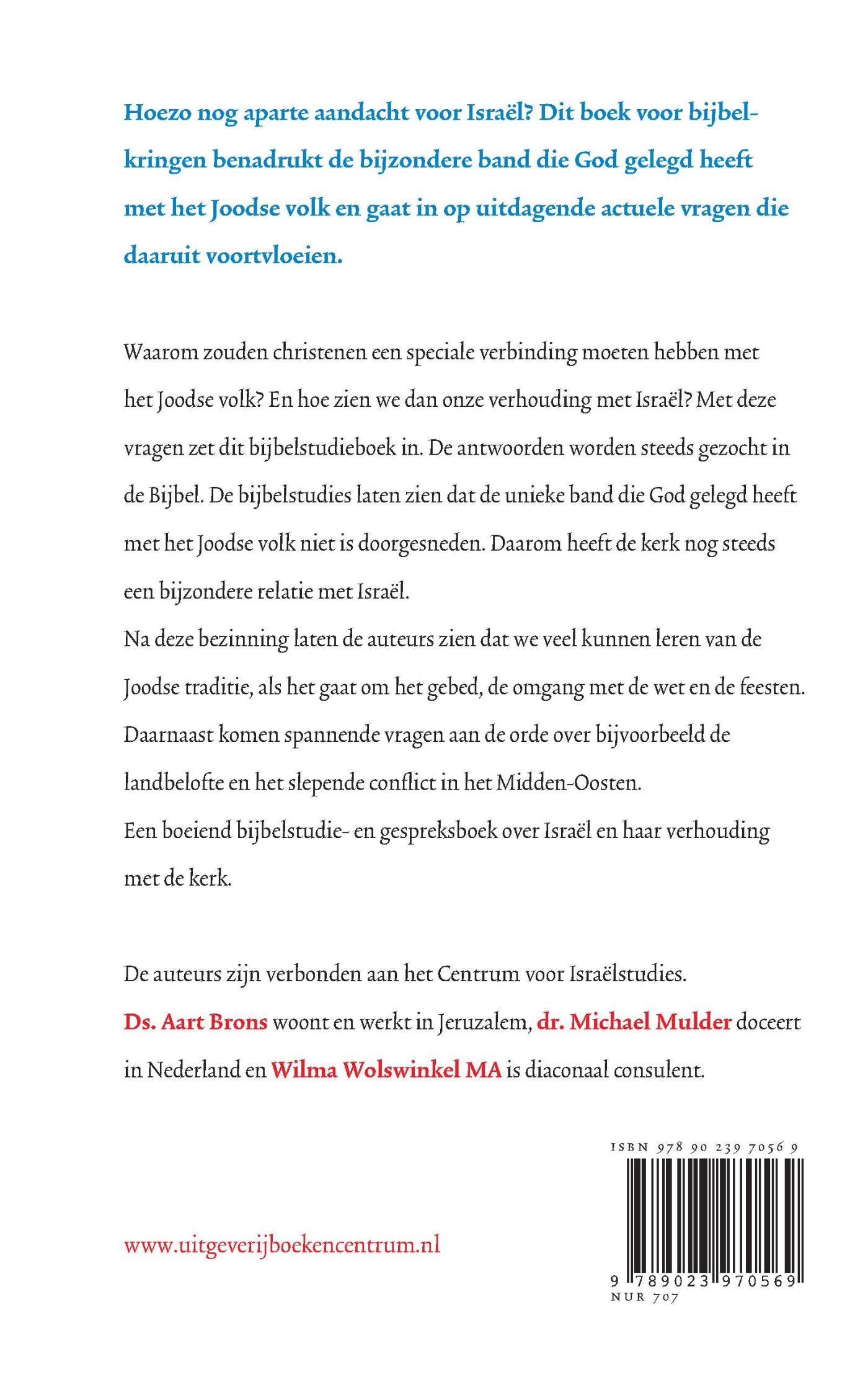 Waarom zouden christenen een speciale verbinding moeten hebben met het Joodse volk? En hoe zien we dan onze verhouding met Israël? Met deze vragen zet dit bijbelstudieboek in. De antwoorden worden steeds gezocht in de Bijbel. De bijbelstudies laten zien dat de unieke band die God gelegd heeft met het Joodse volk niet is doorgesneden. Daarom heeft de kerk nog steeds een bijzondere relatie met Israël.