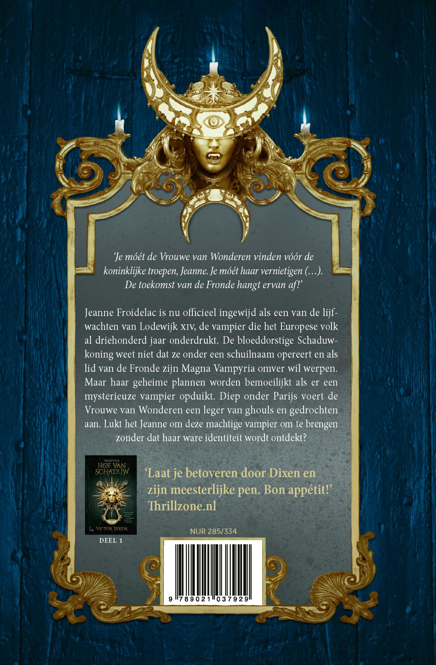 Na Hof van Schaduw, deel 1 van Victor Dixens Vampyria-saga, gaan de avonturen van Jeanne verder in Hof van Wonderen. Jeanne is nu officieel ingewijd als een van de nieuwe lijfwachten van Lodewijk XIV, de vampier die Europa al driehonderd jaar in een ijzeren greep houdt. De Schaduwkoning weet niet dat ze eropuit is om het Magna Vampyria omver te werpen en onder een valse naam opereert.