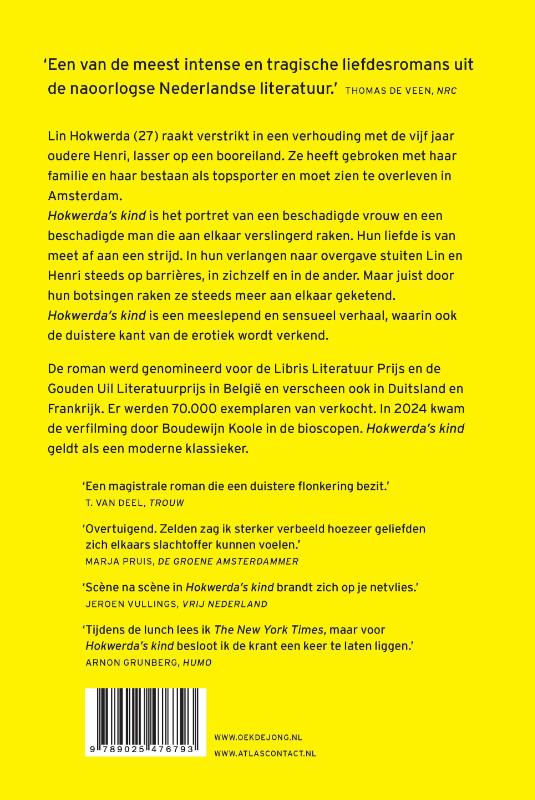 Hokwerda's kind is het portret van een beschadigde vrouw en een beschadigde man die aan elkaar verslingerd raken. Hun liefde is van meet af aan een strijd. In hun verlangen naar overgave stuiten Lin en Henri steeds op barrières, in zichzelf en in de ander. Maar juist door hun botsingen raken ze steeds meer aan elkaar geketend. Een meeslepend en sensueel verhaal, waarin ook de duistere kant van de erotiek wordt verkend.