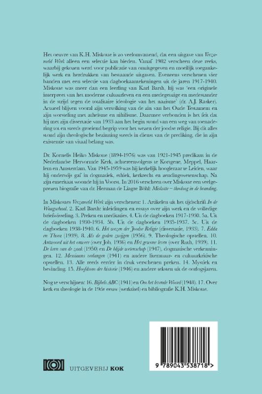 Hoofdsom der historie en andere teksten uit de oorlogsjaren van Dr. K.H. Miskotte vullen het vijftiende deel van diens Verzameld Werk. Dit deel bevat een keuze uit het materiaal waarop Miskotte in de jaren 1939-1945 zijn cursussen over Bijbelse theologie baseerde. Een deel daarvan werd gepubliceerd, zoals Hoofdsom der historie, dat gaat over de Openbaring van Johannes (1946). Daarnaast bevat dit boek niet eerder gepubliceerde teksten over Marcus, de Psalmen en Elia, en de belangrijke lezingenreeks: Balans van de oorlog. Deze teksten laten zien hoe Miskotte in ‘bezet gebied’ zijn gehoor inspireerde tot een ‘betere weerstand’.