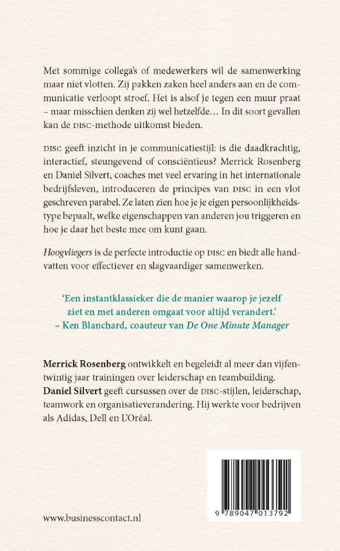 In dit soort gevallen biedt de DISC-methode uitkomst. DISC geeft inzicht in je communicatiestijl: is die daadkrachtig, interactief, steungevend of consciëntieus? Merrick Rosenberg en Daniel Silvert laten je in en vlot geschreven parabel zien hoe je je eigen persoonlijkheidstype bepaalt, welke eigenschappen van anderen jou triggeren en hoe je daar het beste mee om kunt gaan.