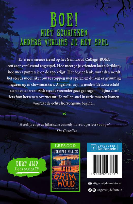 Er is een nieuwe trend op het Grimwoud College: BOE!, een zeer verslavend angstspel. Hoe meer je je vrienden laat schrikken, hoe meer punten je op de app krijgt. Het begint leuk, maar dan wrodt het steeds moeilijker om te stoppen met spelen en duiken er grimmige figuren op in clownmaskers. Angelo en zijn vrienden (de Loserclub) zien dat iedereen zich steeds vreemder gaat gedragen - bijna alsof iets hun hersenen overneemt. Ze zullen snel in actie moeten komen voordat de echte horrorgame begint...