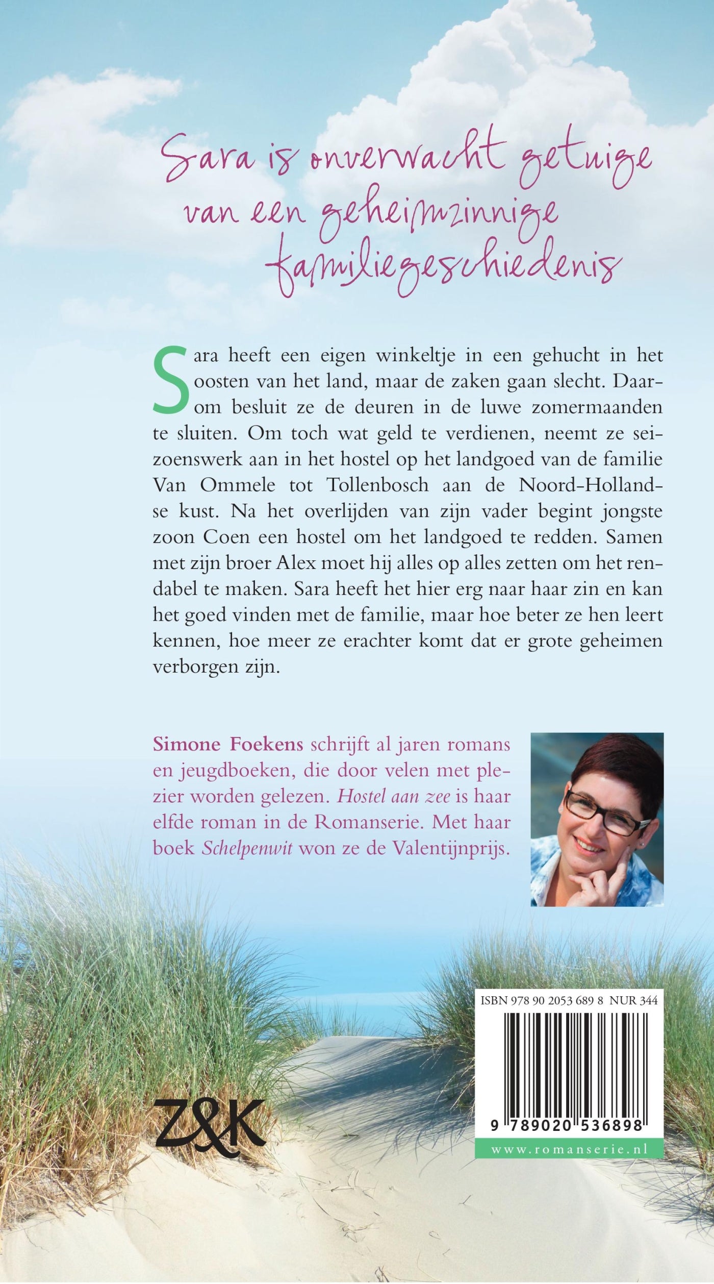 'Hostel aan zee' van Simone Foekens vertelt het verhaal van Sara, die een eigen winkeltje heeft. De zaken gaan slecht, dus ze moet tijdens de zomermaanden noodgedwongen op zoek naar werk om wat geld binnen te brengen. Ze vindt een baan bij het nieuwe hostel op het landgoed van de familie Van Ommele tot Tollenbosch aan de Noord-Hollandse kust. Na de dood van hun vader Eduard hebben zoons Alex en Coen het hostel overgenomen. Ze moeten alles op alles zetten om het landgoed weer rendabel te maken. Sara heeft het hier erg naar haar zin, maar hoe dichter ze bij de familie komt, hoe meer ze erachter komt dat er grote geheimen verborgen zijn.