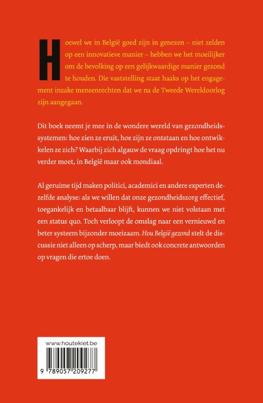 Hoewel we in België goed zijn in genezen – niet zelden op een innovatieve manier – hebben we het moeilijker om de bevolking op een gelijkwaardige manier gezond te houden. Die vaststelling staat haaks op het engagement inzake mensenrechten dat we na de Tweede Wereldoorlog zijn aangegaan. Dit boek neemt je mee in de wondere wereld van gezondheidssystemen: hoe zien ze eruit, hoe ze zijn ontstaan en hoe ontwikkelen ze zich? Waarbij zich algauw de vraag opdringt hoe het nu verder moet, in België maar ook mondiaal.