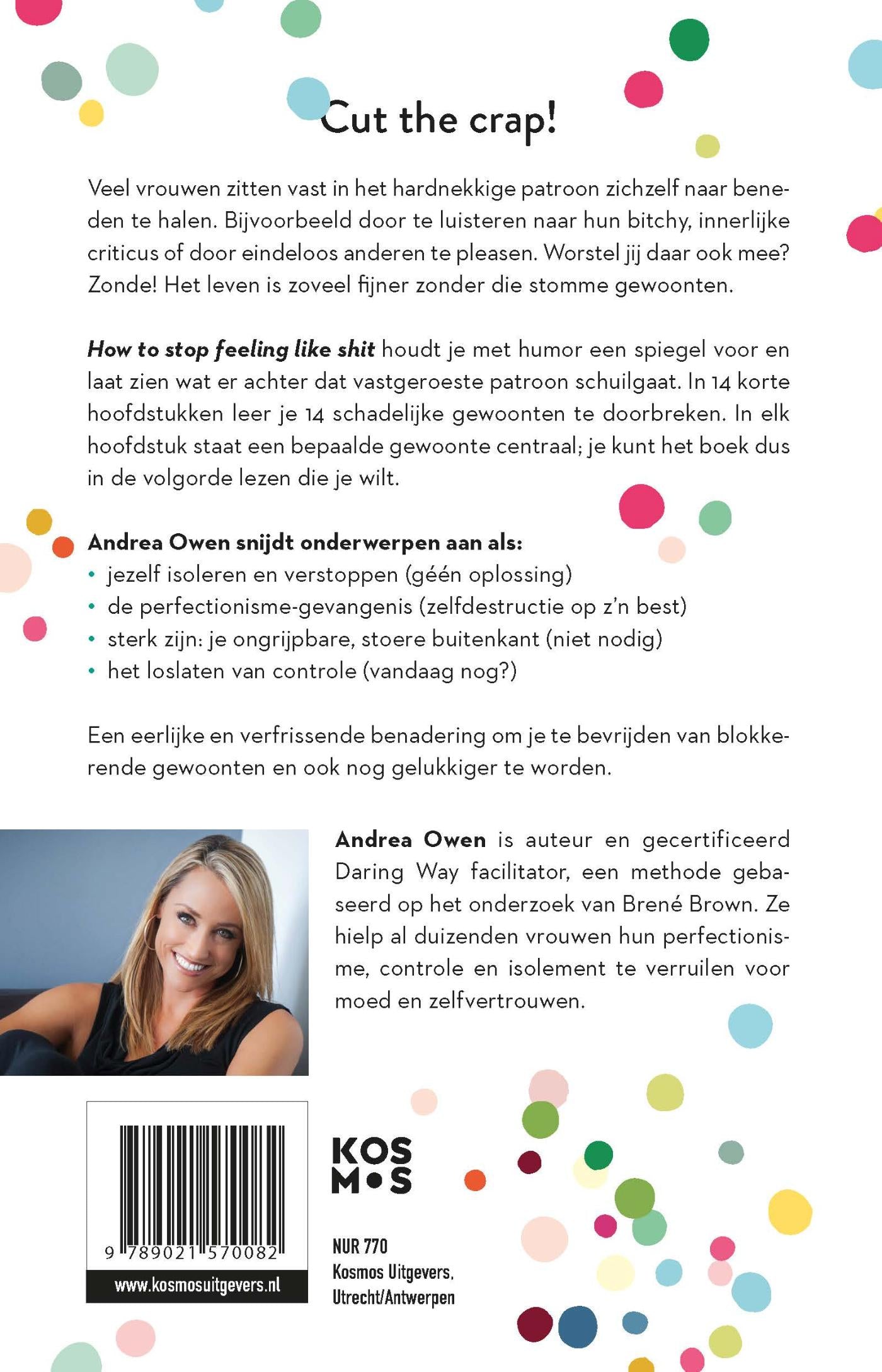 In ‘How to stop feeling like shit’ geeft Andrea Owen een eerlijke en verfrissende benadering om vrouwen af te helpen van de meest hardnekkige gewoonten om zichzelf naar beneden te halen.