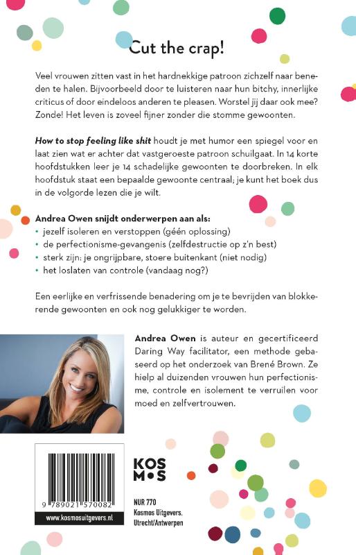 In ‘How to stop feeling like shit’ geeft Andrea Owen een eerlijke en verfrissende benadering om vrouwen af te helpen van de meest hardnekkige gewoonten om zichzelf naar beneden te halen.