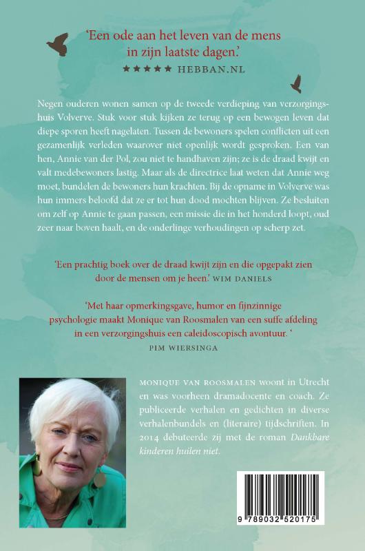 Negen ouderen wonen samen op de tweede verdieping van verzorgingshuis Volverve. Stuk voor stuk kijken ze terug op een bewogen leven dat diepe sporen heeft nagelaten. Tussen de bewoners spelen conflicten uit een gezamenlijk verleden waarover niet openlijk wordt gesproken. Een van hen, Annie van der Pol, zou niet te handhaven zijn; ze is de draad kwijt en valt medebewoners lastig. Maar als de directrice laat weten dat Annie weg moet, bundelen de bewoners hun krachten. Bij de opname in Volverve was hen immers beloofd dat ze er tot hun dood mochten blijven. Ze besluiten om zelf op Annie te gaan passen, een missie die in het honderd loopt, oud zeer naar boven haalt, en de onderlinge verhoudingen op scherp zet.