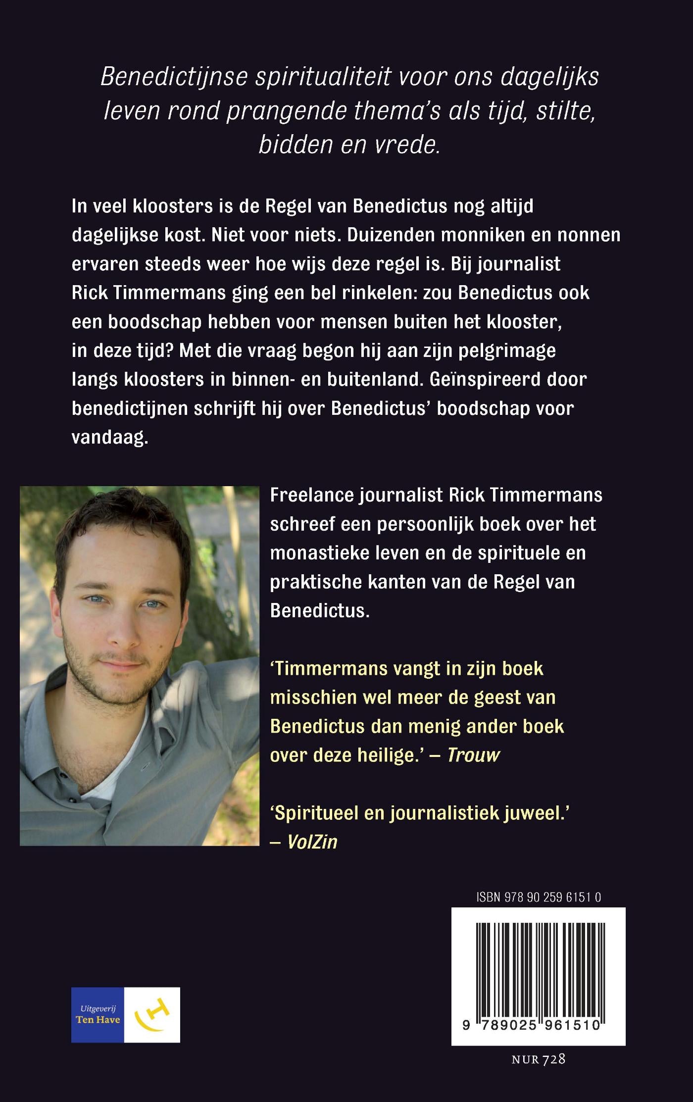 De Regel van Benedictus wordt nog steeds gepraktiseerd in eeuwenoude kloostertradities. Hoe kunnen we die regel toepassen in ons eigen leven? Op deze vraag probeert Rick Timmermans een antwoord te geven. Hij gaat in gesprek met benedictijner monniken en zoekt naar de betekenis van de Regel in en buiten het klooster. Een veelzijdig, journalistiek boek over de spirituele, ethische en praktische kanten van de Regel van Benedictus.