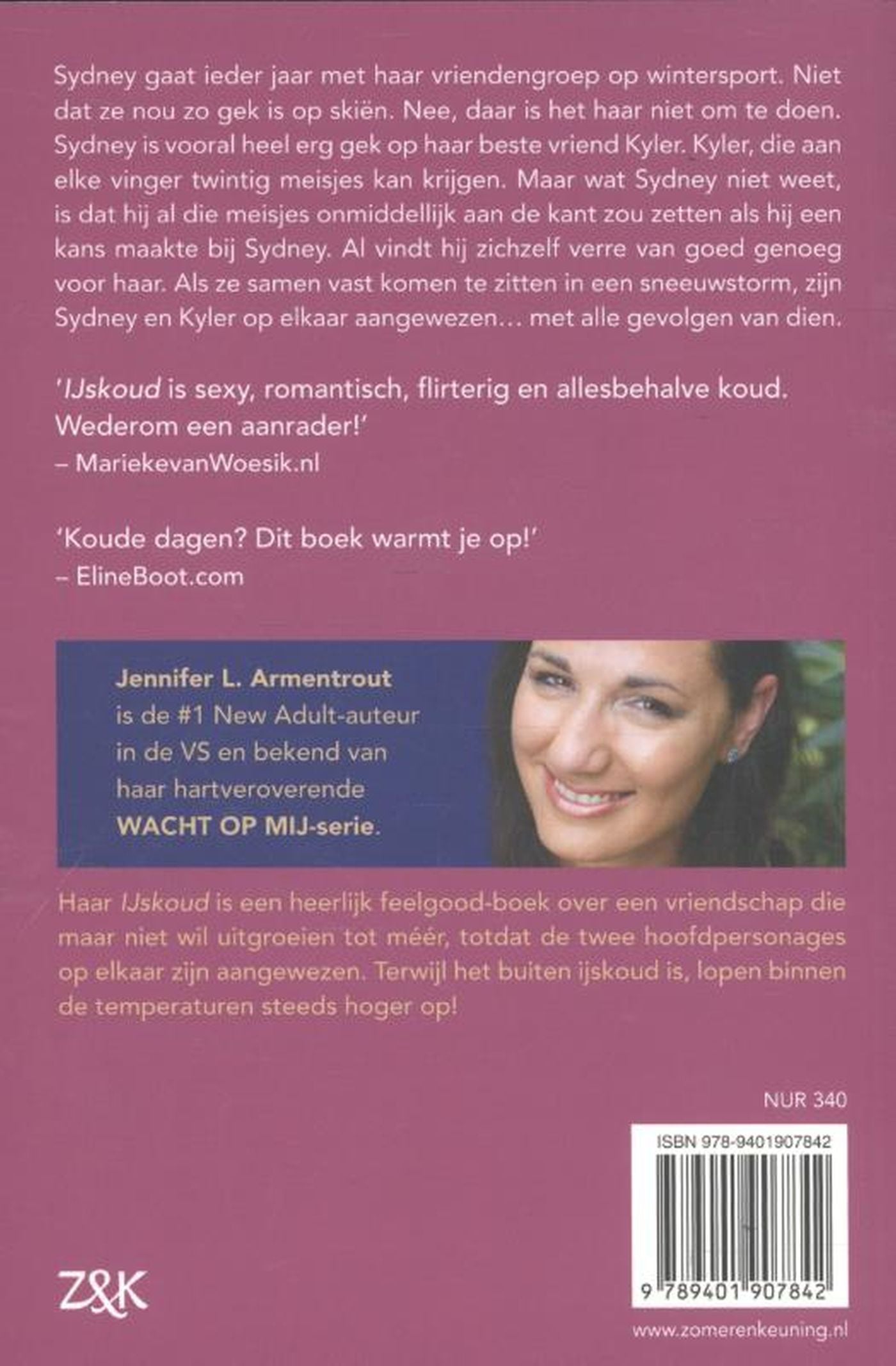 In 'IJskoud' van Jennifer L. Armentrout komen Sydney en Kyler samen vast te zitten in een skioord. Ze kennen elkaar al van jongs af aan en zijn stiekem verliefd op elkaar. Dat willen ze alleen niet aan de ander laten merken. Maar nu ze nergens heen kunnen, kunnen ze ook niet meer vluchten voor hun gevoelens. Die stijgen al gauw tot temperaturen vér boven het vriespunt! Jennifer Armentrout is een van de grootste New Adult-schrijfsters in de VS. Haar specialiteit? Heerlijke wegdroomhunks! Ook in IJskoud (Engelse titel: Frigid), Jennifer Armentrouts tweede boek in Nederland na het succesvolle Wacht op mij, is het zwijmelen geblazen. We just can't get enough...