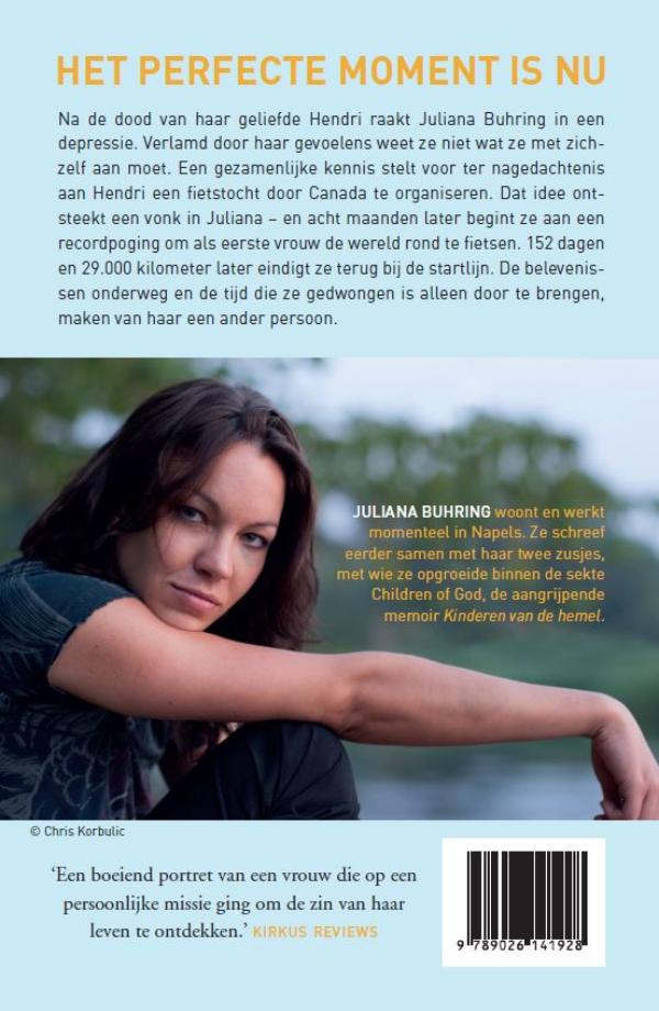 Juliana Buhring is nog altijd de wereldrecordhouder ‘vrouw die in haar eentje de wereld rondfietst’, volgens het Guiness Book of World Records ‘Een boeiend portret van een vrouw die op een persoonlijke missie ging om de zin van haar leven te ontdekken. Diepgravend en boeiend.’ Kirkus Reviews