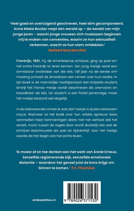 In de betoverende roman Ik was dat meisje is zij een volwassen vrouw. Wanneer ze het boek over hun relatie opnieuw leest, versmelten haar herinneringen deels met het verhaal dat het vertelt, maar tussen de regels door wordt duidelijk dat wat de schrijver beschouwde als spel en tijdverdrijf, voor het meisje voelde als het begin van het echte leven.
