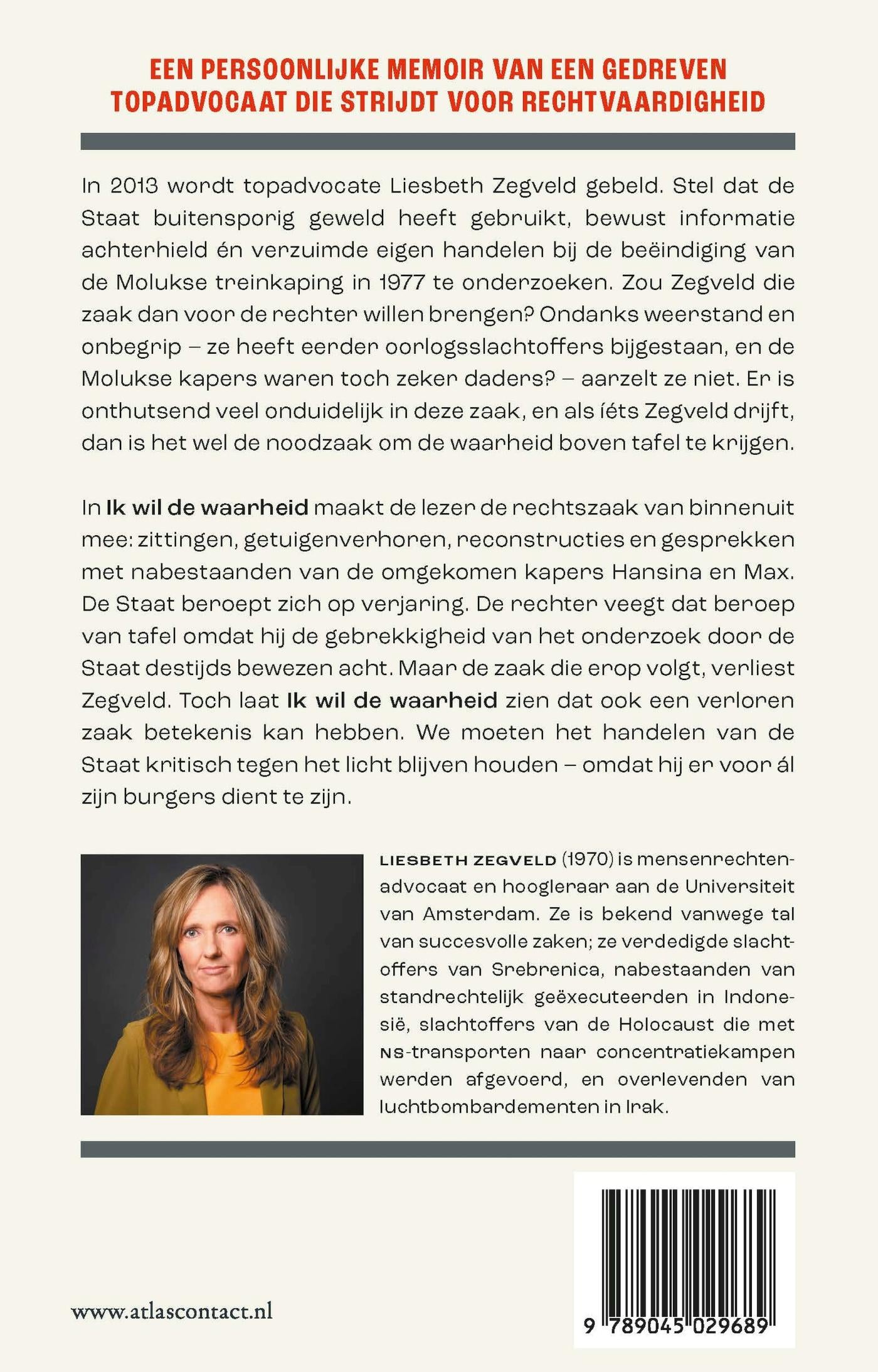 De lezer maakt de rechtszaak van binnenuit mee: zittingen, getuigenverhoren, reconstructies en gesprekken met nabestaanden van de omgekomen kapers. Zegveld verliest de zaak, maar ‘Ik wil de waarheid’ laat zien dat ook een verloren zaak betekenis kan hebben. We moeten het handelen van de Staat kritisch tegen het licht blijven houden – omdat hij er voor ál zijn burgers dient te zijn.