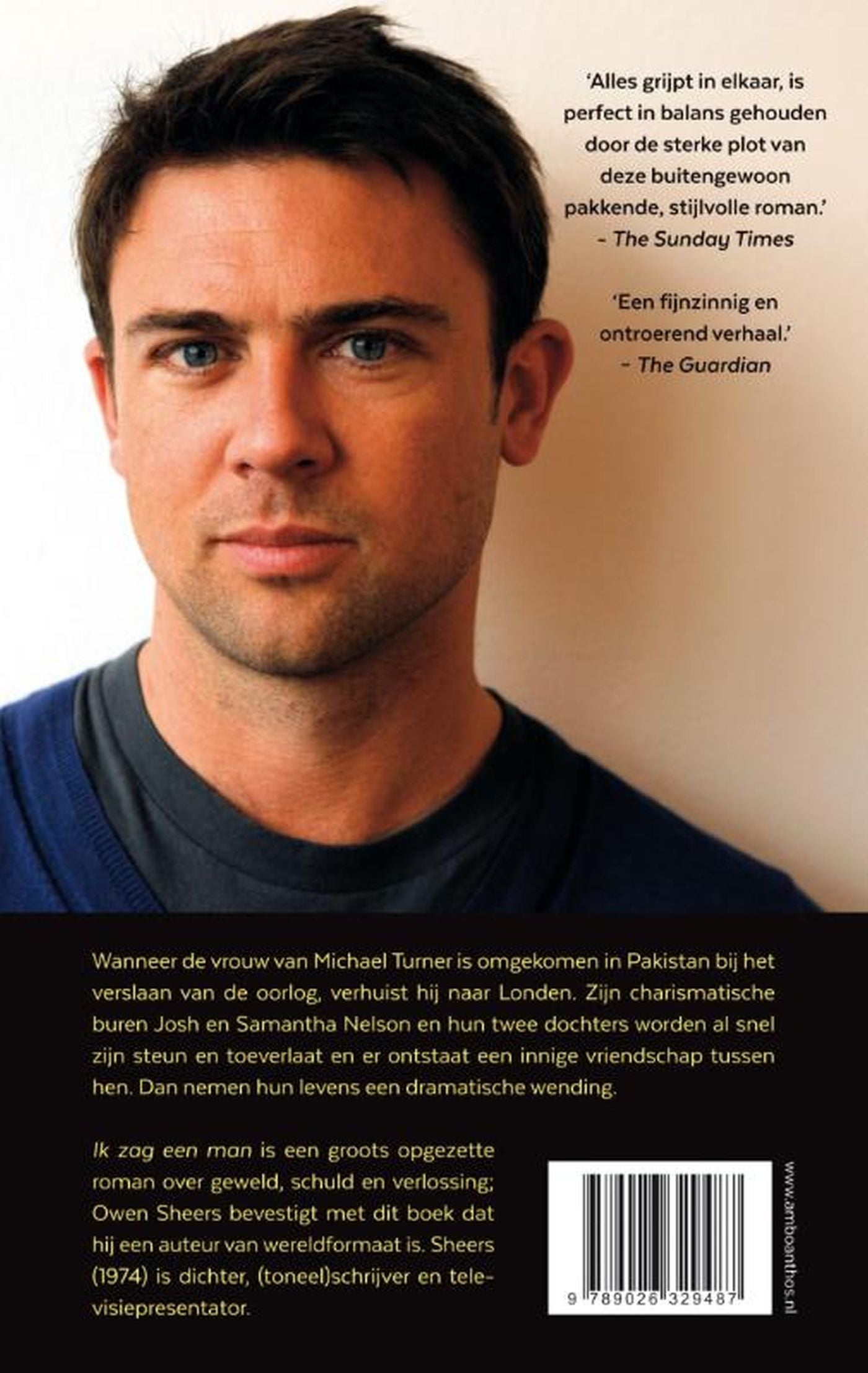 Ik zag een man van Owen Sheers is een boek over rouw, vriendschap en verlossing. De vrouw van Michael Turner komt tijdens haar werk als journalist in Pakistan om het leven. Michael verhuist naar Londen en sluit vriendschap met zijn buren, de familie Nelson. Hoewel zij alles hebben wat Michael niet heeft, liefde, kinderen, een gelukkig gezinsleven, komt hij er toch vaak over de vloer. De vriendschap doet hem goed en hij pakt zijn leven weer op, totdat een dramatische gebeurtenis alles verandert. Sindsdien gaat Michael gebukt onder een schuldgevoel en draagt hij de zware last van een geheim met zich mee. Maar de waarheid laat zich niet verdringen. Ik zag een man van Owen Sheers is voor de fans van Babel.
