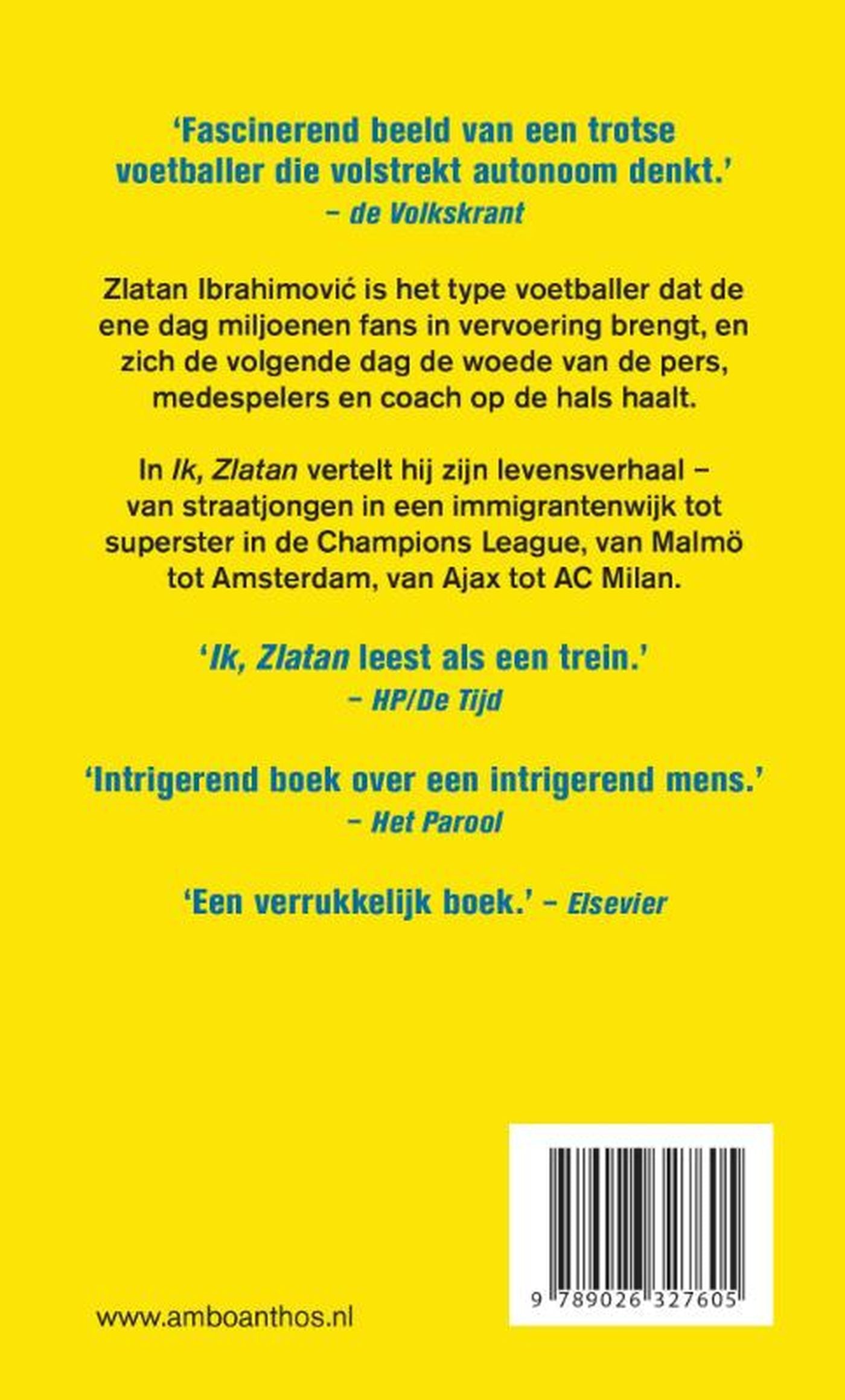 De Zweedse journalist en romanschrijver David Lagercrantz bracht vele uren met Zlatan door en wist met groot inlevingsvermogen zijn stem te vangen. Het resultaat is een authentiek levensverhaal van een immigrantenjongen die zich ontwikkelde tot een speler van wereldformaat.