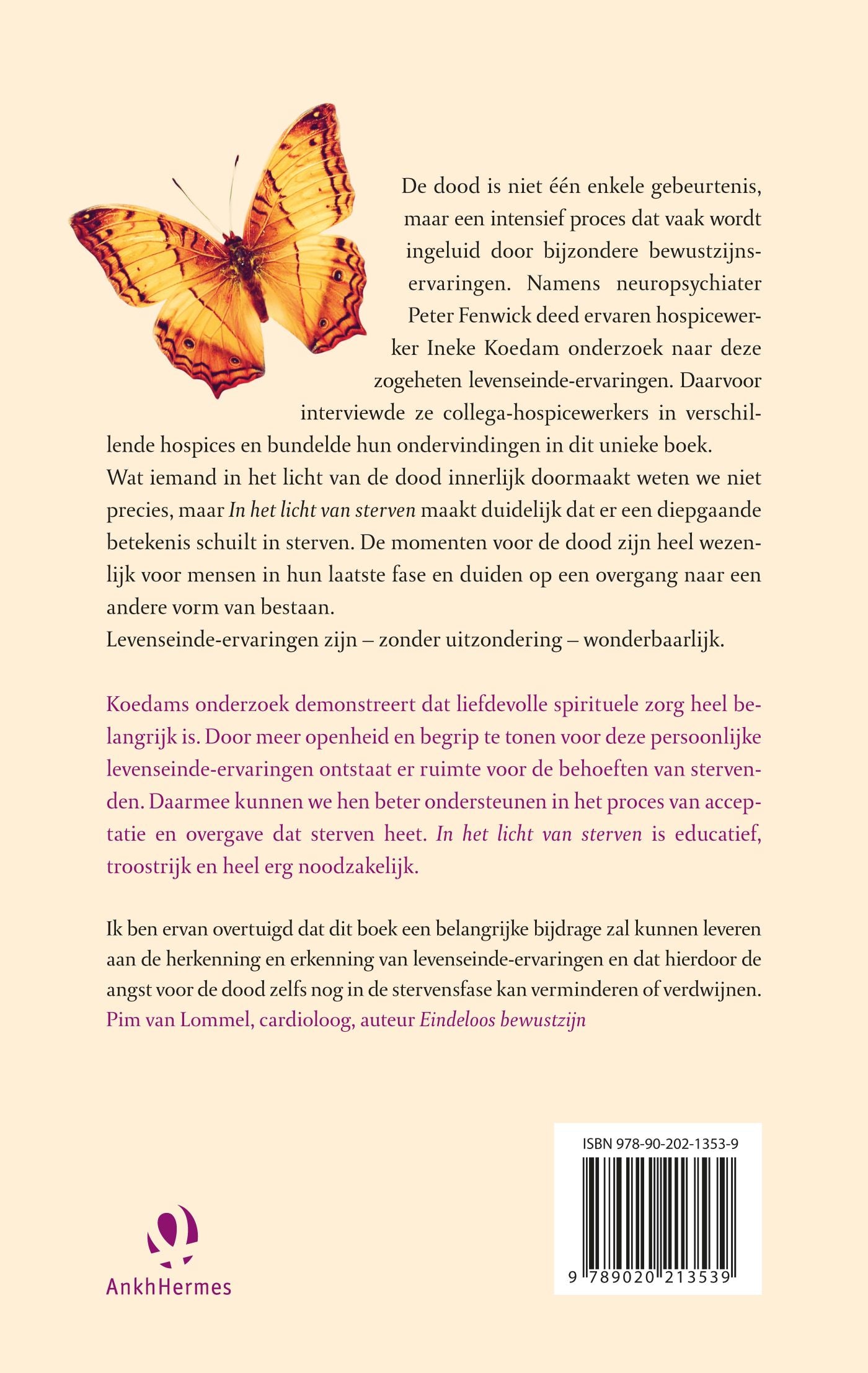 Hoe bereidt de stervende mens zich voor op de dood? De dood is niet één enkele gebeurtenis, maar een intensief proces dat vaak wordt ingeluid door bijzondere bewustzijnservaringen. Namens neuropsychiater Peter Fenwick deed ervaren hospicewerker Ineke Koedam onderzoek naar deze zogeheten levenseinde-ervaringen. Daarvoor interviewde ze collega-hospicewerkers in verschillende hospices. Zij bundelde hun ondervindingen in In het licht van sterven, een educatief en uniek boek.