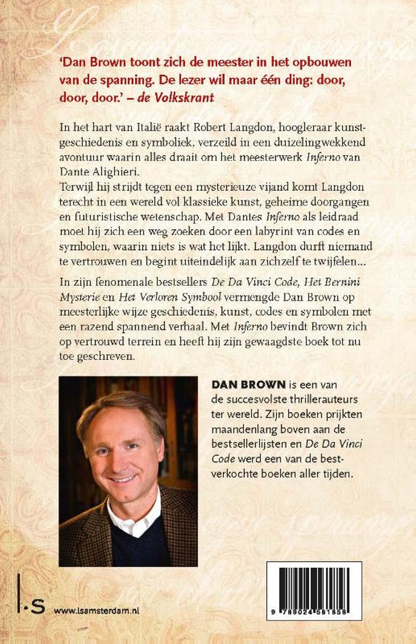 In zijn fenomenale bestsellers De Da Vinci Code, Het Bernini Mysterie, Het Verloren Symbool en Inferno vermengt Dan Brown op meesterlijke wijze geschiedenis, kunst, codes en symbolen met een razend spannend avontuur.