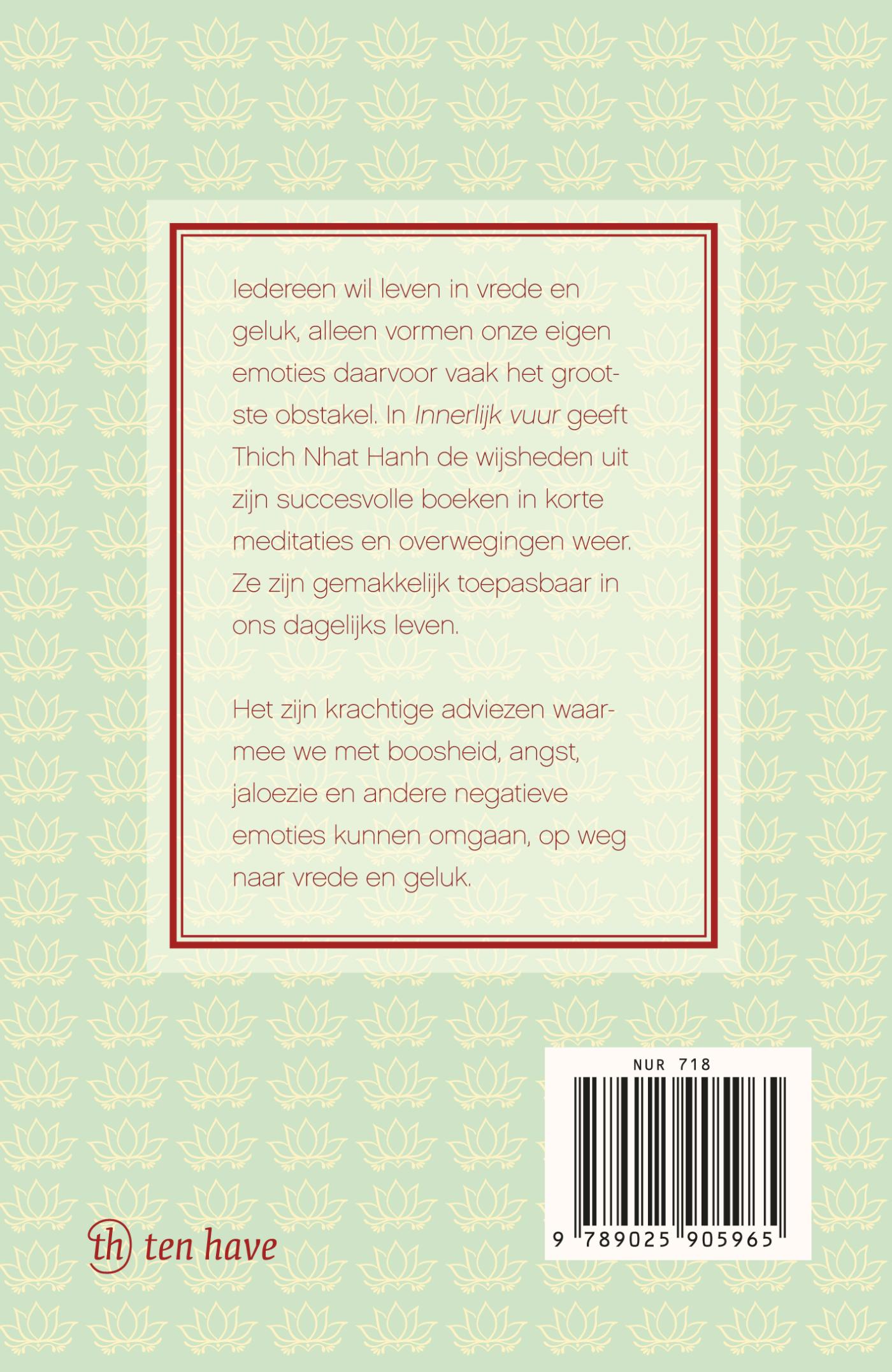 Thich Nhat Hanhs Innerlijk vuur staat vol met wijsheden, korte overdenkingen, meditaties en reflecties. Allemaal hebben ze betrekking op basis-emoties waarmee iedereen dagelijks te maken heeft. Iedereen is op zoek naar geluk, maar onze emoties vormen vaak een groot obstakel. Of het nu gaat om angst, boosheid of afgunst, Thich Nhat Hanh laat zien hoe je iedere stemming om kunt buigen naar innerlijke vrede en liefde.