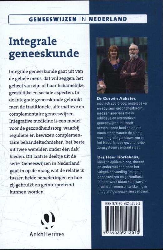 Integrale geneeskunde is het twaalfde en laatste deel in de nieuwe AnkhHermes-serie Geneeswijzen in Nederland. Eerder verschenen al Natuurgeneeskunde, Kruidengeneeskunde, Chinese geneeskunde, Ayurvedische geneeskunde, Antroposofische geneeskunde, Homeopathie, Lichaam & geest therapieën, Manuele behandelwijzen, Spirituele westerse geneeswijzen, Traditionele niet-westerse geneeswijzen en Voedingstherapie en -supplementen . Er is veel belangstelling voor alternatieve geneeswijzen, en er is ook heel veel over te vinden op internet. Maar hoe weet je of deze informatie betrouwbaar is? AnkhHermes biedt met deze serie de meest up-to-date informatie, op een begrijpelijke manier geschreven door medische professionals. Wegwijs in een uur!