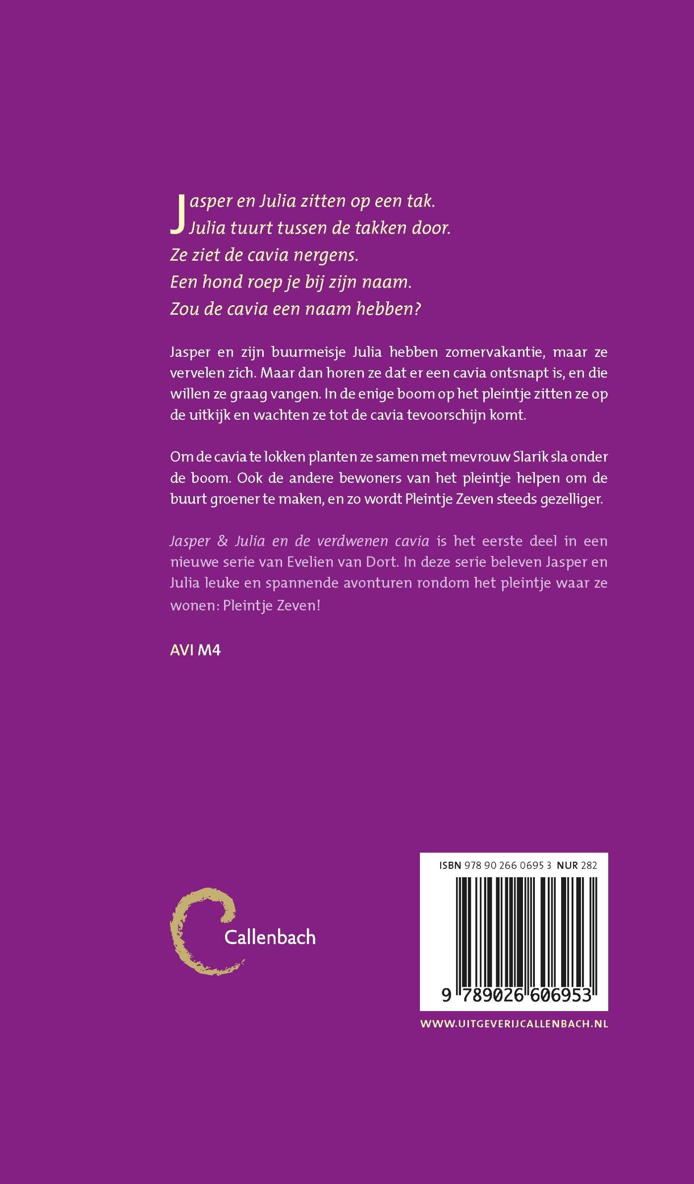 Jasper en Julia spelen in de zomervakantie iedere dag met elkaar. Maar al meteen gaat het mis: de cavia van buurman Baks ontsnapt! De kinderen verzinnen van alles om het beestje weer te vangen. Jasper en Julia en de verdwenen cavia is het eerste deel in een nieuwe serie van de populaire schrijfster Evelien van Dort. In deze serie beleven Jasper en Julia leuke en spannende avonturen rondom het pleintje waar ze wonen. Langzamerhand leren we alle bewoners aan Pleintje Zeven kennen!