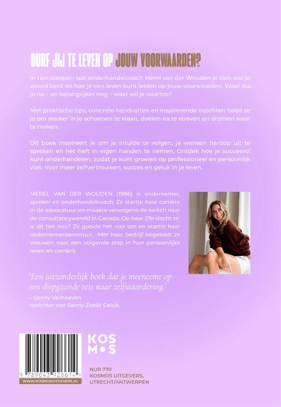 Vergroot je eigenwaarde met de hulp van onderhandelcoach Merel van der Wouden. In dit praktische zelfhulpboek voor vrouwen inspireert ze je om je intuïtie te volgen, je wensen hardop uit te spreken en het heft in eigen handen te nemen. Zo leer je om je dromen waar te maken en te krijgen wat je waard bent. Ze biedt praktische handvatten om succesvol te onderhandelen en laat zien hoe je zowel op het werk als in je persoonlijke leven kunt groeien door zelftwijfel te overwinnen. Voor meer zelfvertrouwen, succes en geluk in je leven.