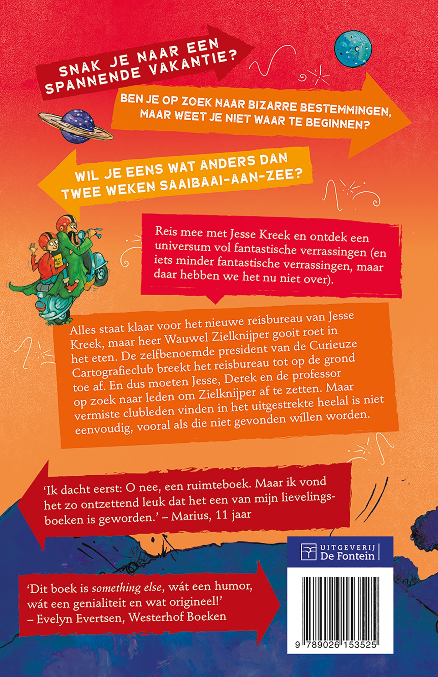 Alles staat klaar voor het nieuwe reisbureau van Jesse Kreek. Met de ronddraaiende stenencirkel kan hij in tijd én in ruimte reizen; het heelal is onbegrensd. Hoewel, met reisleiders Gerard Tandenbreker en Prins Huichel gebeuren er rare dingen. En op Professor Stoule-Gang hoeft Jesse al helemaal niet te rekenen; die staat garant voor chaos en problemen. Vergezel Jesse op zijn onvergetelijke tijdruimtereis. En hou je goed vast: met lachgarantie!