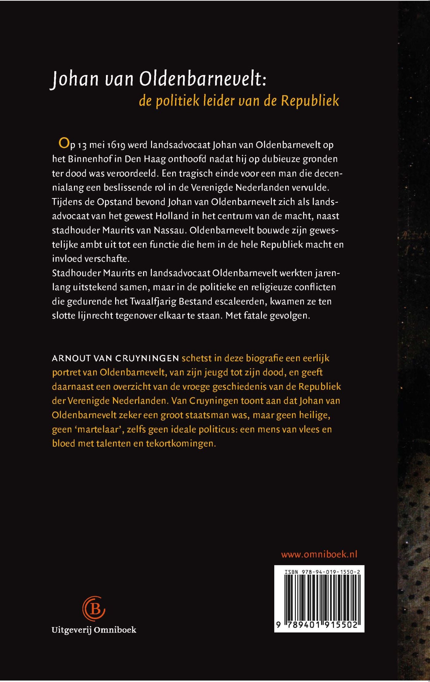 Johan van Oldenbarnevelt wist als doortastende landsadvocaat van Holland, de hoogste politieke functionaris van het gewest, de basis te leggen voor de Nederlandse staat. Als politiek leider ging het hem voor de wind, totdat hij in godsdiensttwisten verzeild raakte en recht tegenover stadhouder Maurits van Nassau kwam te staan. Dit kostte hem zijn leven. Op 13 mei 1619 werd Johan van Oldenbarnevelt onthoofd op het Binnenhof in Den Haag. Vierhonderd jaar na zijn dood schrijft Arnout van Cruyningen in ‘Johan van Oldenbarnevelt’ over deze intrigerende staatsman en zijn rol bij het ontstaan van de Republiek.