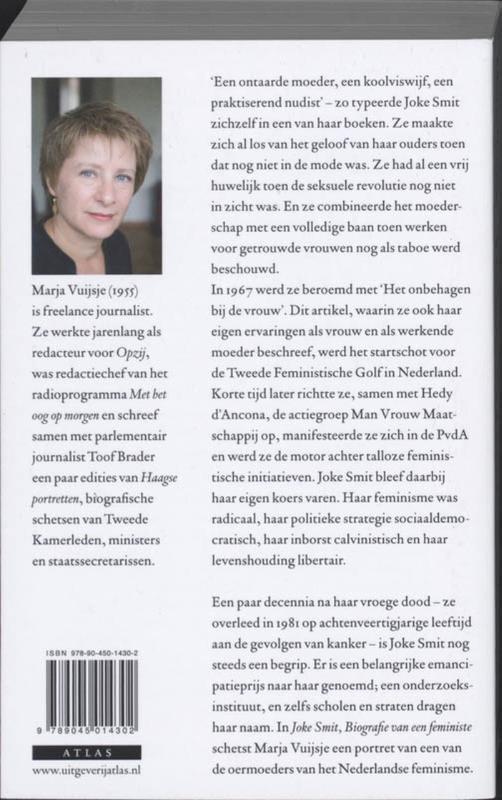 In ‘Joke Smit, Biografie van een feministe’ schetst Marja Vuijsje een portret van een van de oermoeders van het Nederlands feminisme. ‘Een ontaarde moeder, een koolviswijf, een praktiserend nudist’ – zo typeerde Joke Smit zichzelf in een van haar boeken. Ze maakte zich al los van het geloof van haar ouders toen dat nog niet in de mode was. Ze had al een vrij huwelijk toen de seksuele revolutie nog niet in zicht was. En ze combineerde het moederschap met een volledige baan toen werken voor getrouwde vrouwen nog als taboe werd beschouwd.