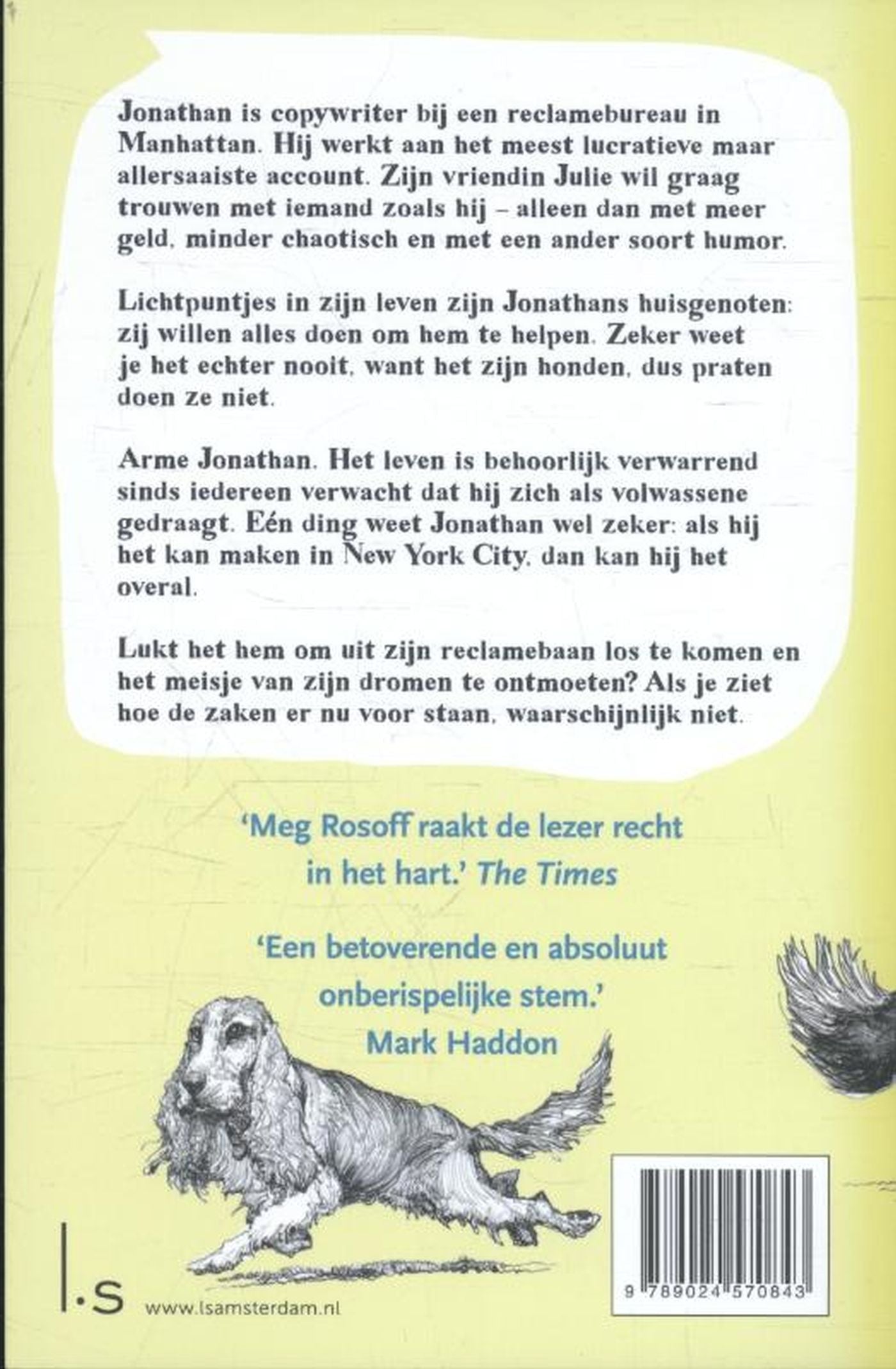 Jonathan gaat los is een Nora Ephron-waardige romantische komedie, voor iedereen die genoten heeft van Het Rosie Project en Mark Haddon. Meg Rosoff werd bekend met Hoe ik nu leef, een wereldwijde bestseller. Ze kijkt met veel humor nét even anders naar de wereld en kan de zoekende twintiger meesterlijk neerzetten.