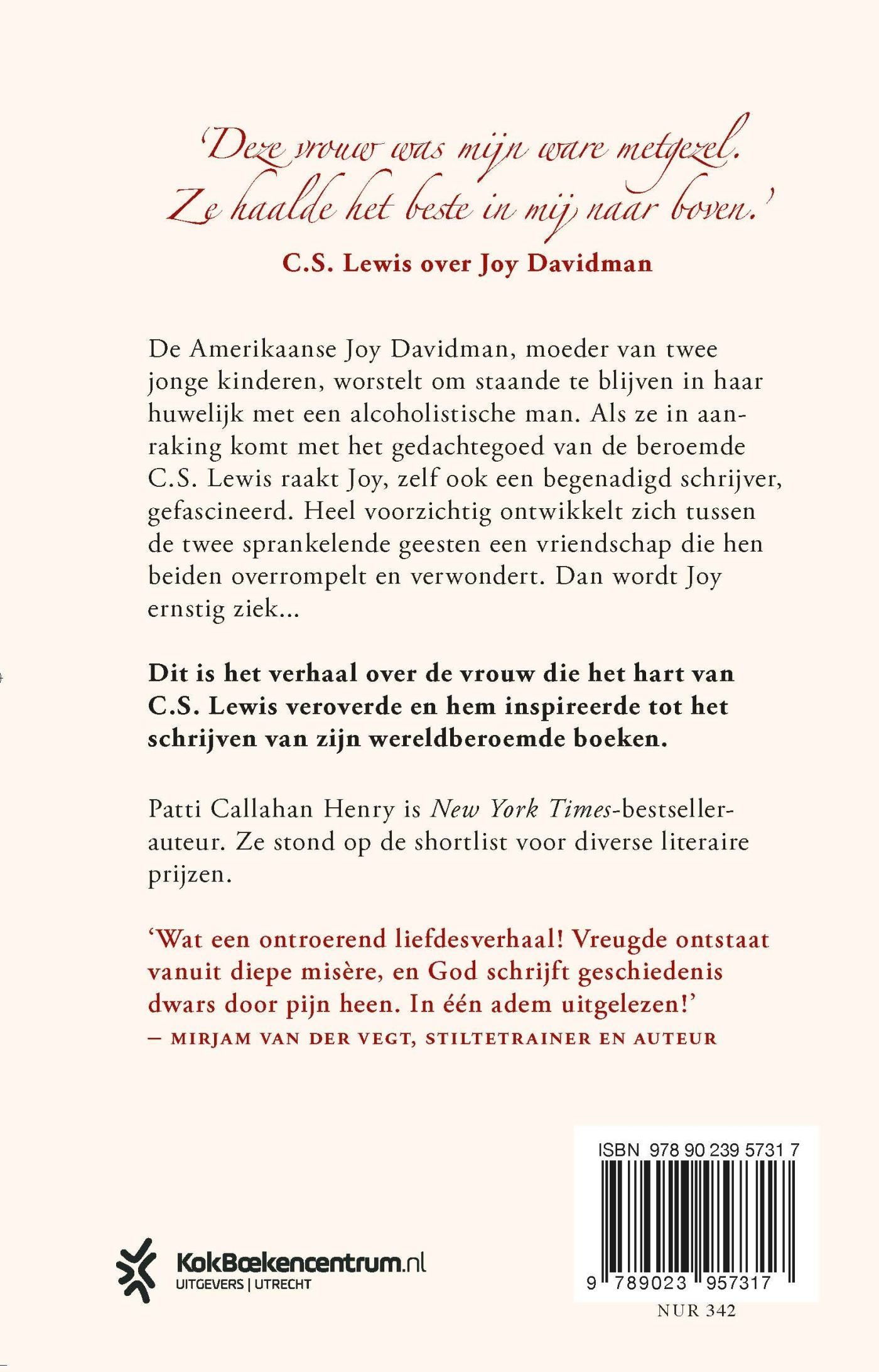 Joy van Patti Callahan is een indrukwekkend liefdesverhaal over de vrouw die C.S. Lewis liefhad. Joy Davidman, een briljant schrijfster en een strijdbare moeder, zit gevangen in een relatie met een alcoholistische man. Als ze in aanraking komt met het gedachtegoed van C.S. Lewis raakt Joy gefascineerd. Heel voorzichtig ontwikkelt zich een vriendschap, die uiteindelijk uitmondt in een huwelijk. Dan wordt Joy ernstig ziek… Dit is het verhaal van de vrouw die het hart van C.S. Lewis veroverde en hem inspireerde tot het schrijven van zijn vele, nog steeds alom bekende boeken (o.a. de Narnia-reeks).
