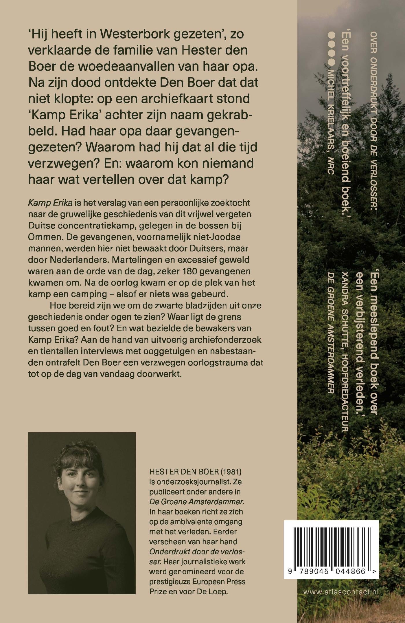 ‘Hij heeft in Westerbork gezeten’, zo verklaarde de familie van Hester den Boer de woedeaanvallen van haar opa. Na zijn dood ontdekte ze dat dat niet klopte: op een archiefkaart stond ‘Kamp Erika’ achter zijn naam gekrabbeld. Had hij daar gevangengezeten? Waarom had hij dat al die tijd verzwegen? En: waarom kon niemand haar wat vertellen over dat kamp?